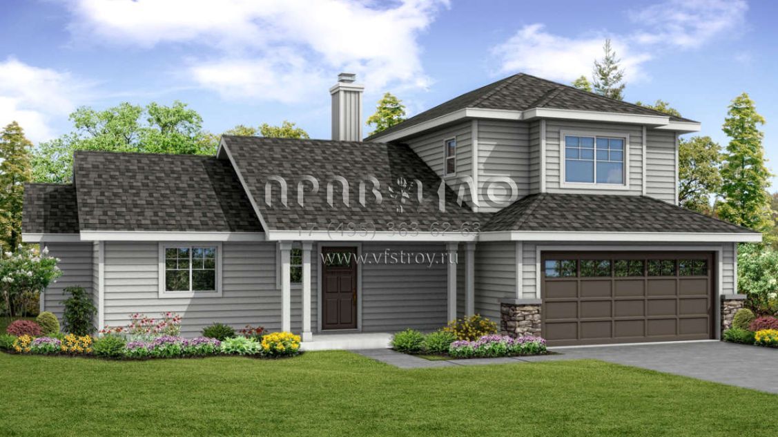 Проект двухэтажного дома с гаражом на две машины в стиле Ранчо S5-174 (035-00820)