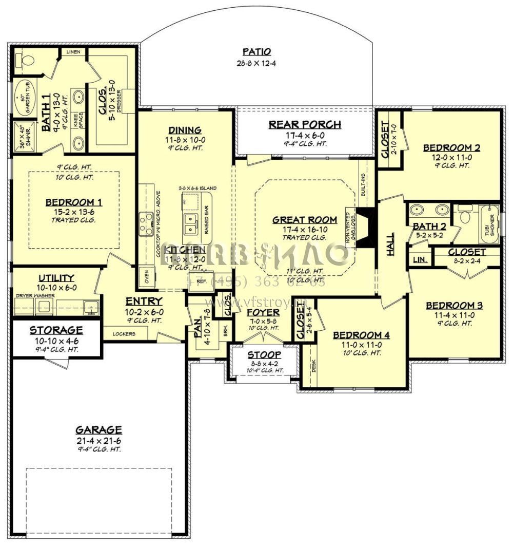 Проект одноэтажного дома с гаражом на две машины в стиле Ранчо S5-174 (041-00088)