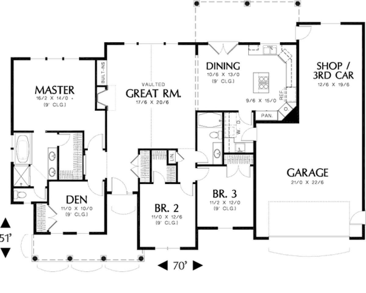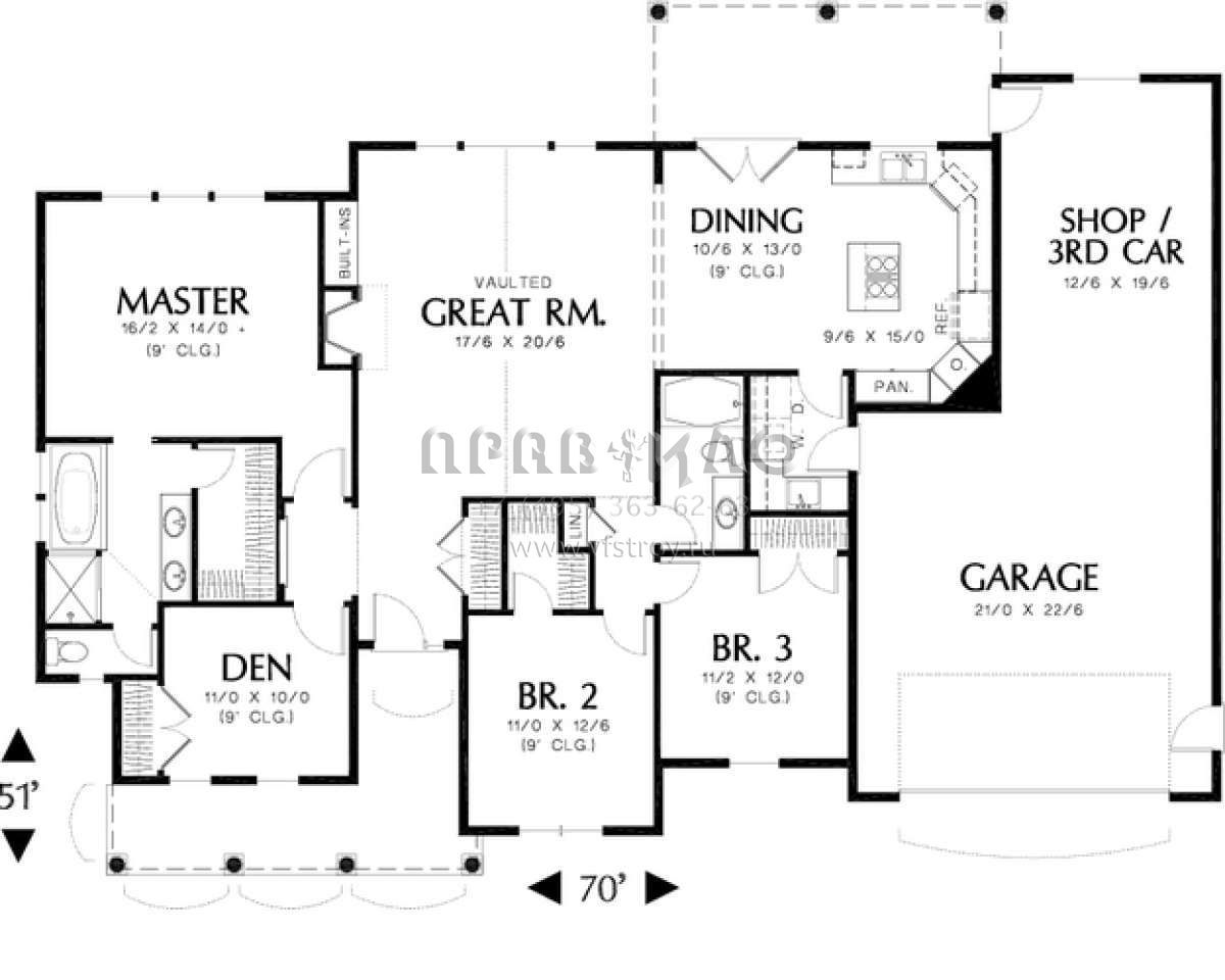 S5-174 (2559-00076) Это иностранный проект, для которого требуется адаптация под нормы, действующие в Российской Федерации. Вы видите проект дома в стиле Ранчо. В этом доме сочетаются черты сельской постройки и аскетичность лофта. Внутри жильцы смогут проводить время с максимальным комфортом. Обратим внимание, что сейчас на планировках все размеры представлены в футах. Для перевода в метры вам необходимо значение в футах умножить на 0,3048.