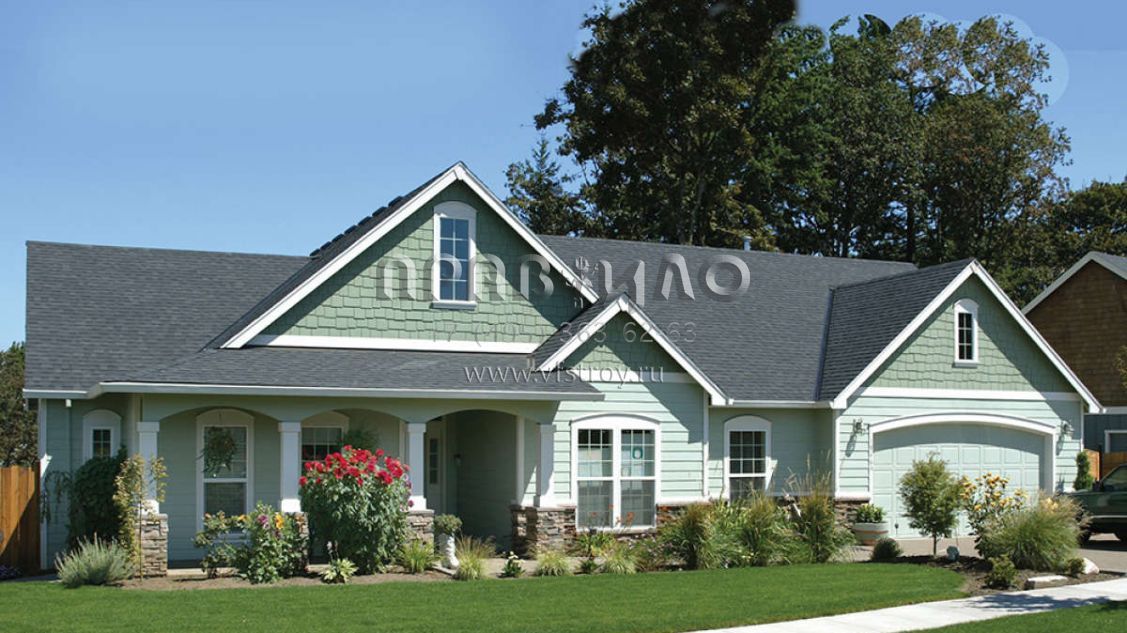 Большая площадь участка позволяет выбрать одноэтажный проект дома, особенно если в семье есть пожилые люди, инвалиды или маленькие дети.
