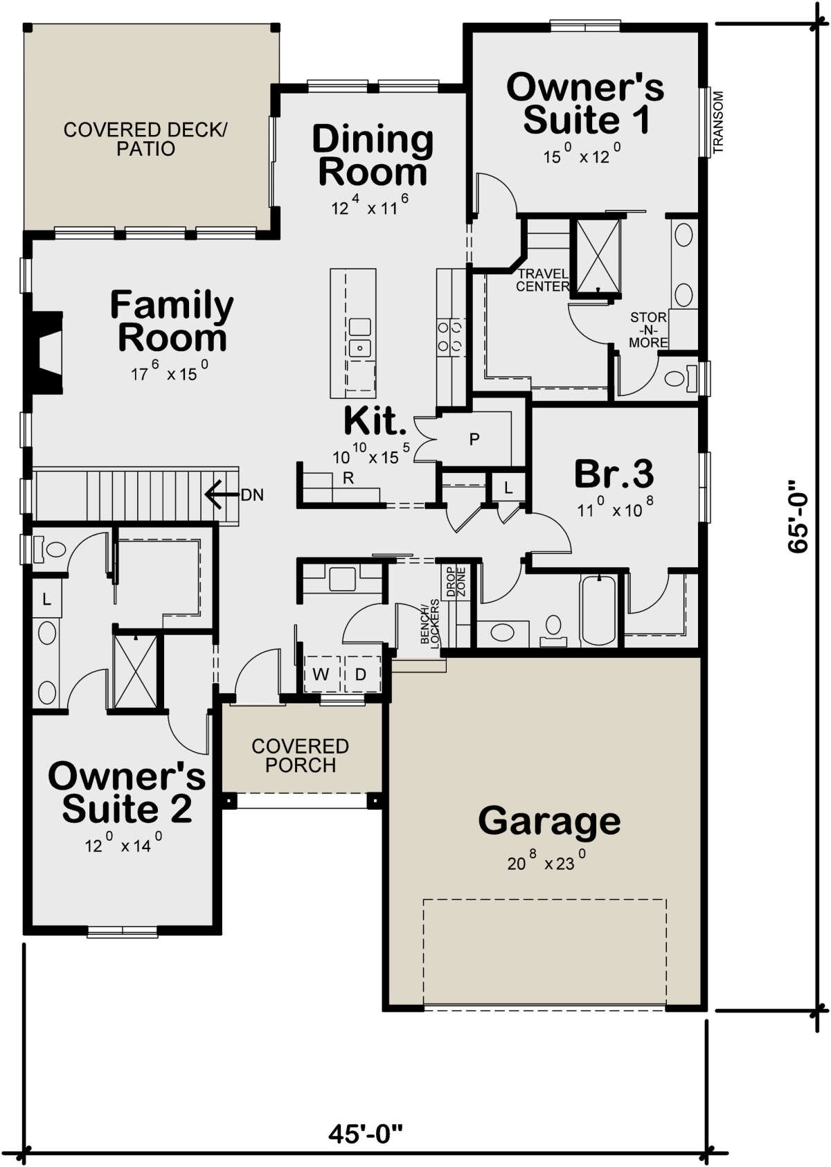 S5-174 (402-01660) Это иностранный проект, для которого требуется адаптация под нормы, действующие в Российской Федерации. Вы видите проект дома в современном стиле. В этом доме сочетаются черты сельской постройки и аскетичность лофта. Внутри жильцы смогут проводить время с максимальным комфортом. Обратим внимание, что сейчас на планировках все размеры представлены в футах. Для перевода в метры вам необходимо значение в футах умножить на 0,3048.