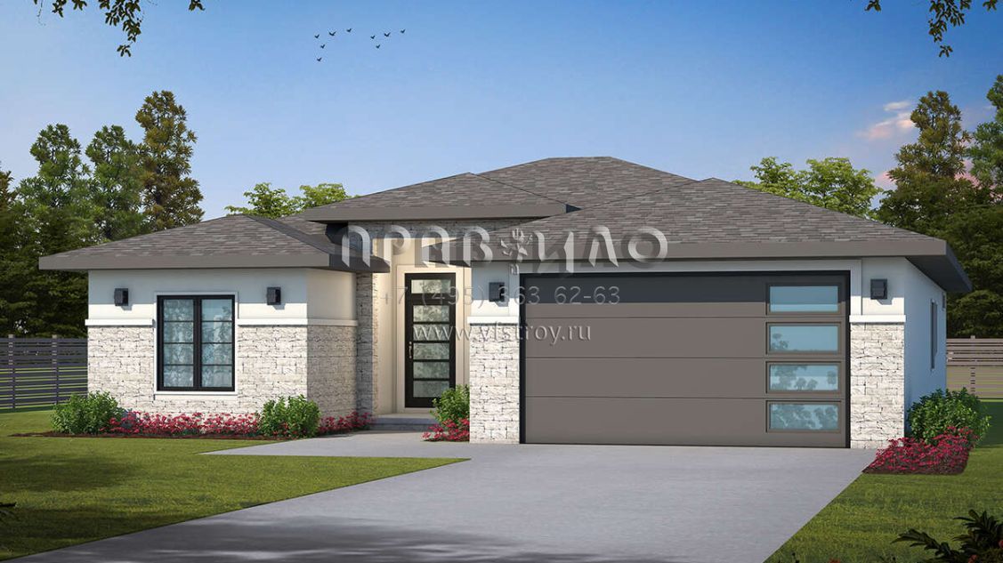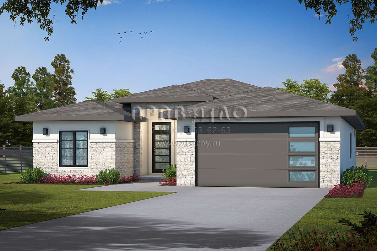 Проект одноэтажного дома с гаражом на две машины в современном стиле S5-174 (402-01739)