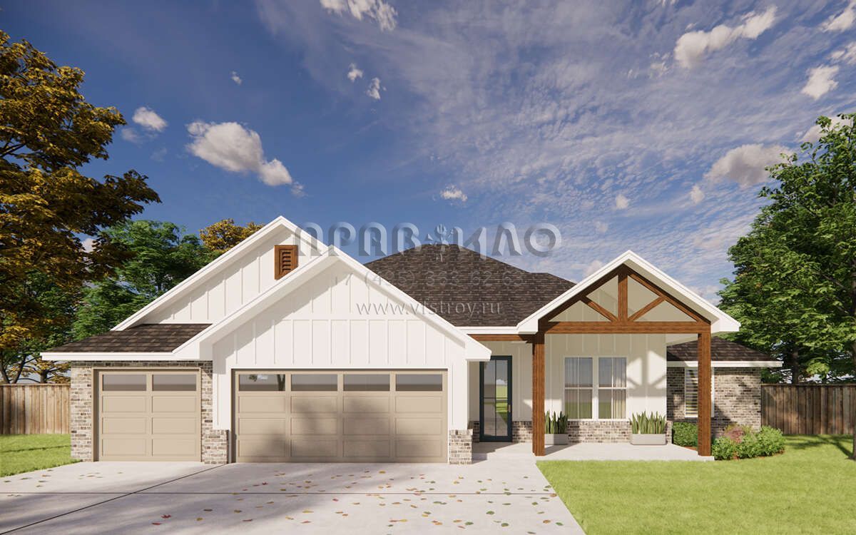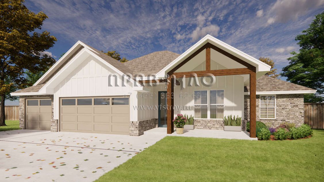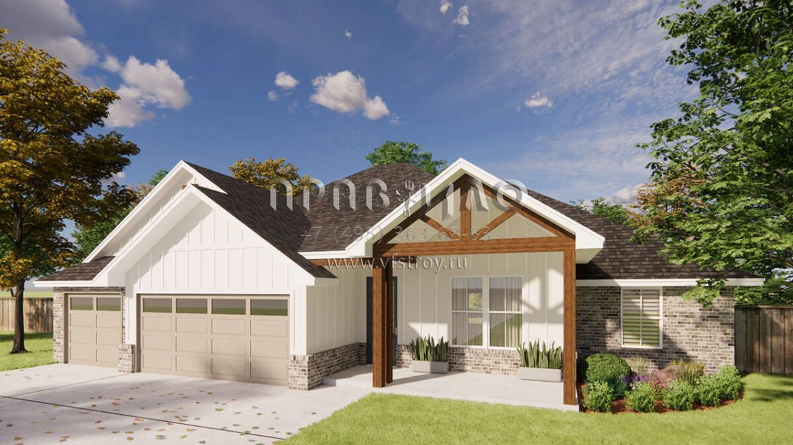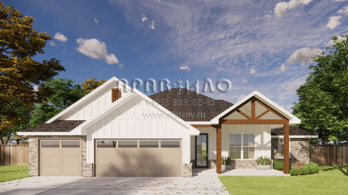 Проект одноэтажного дома с гаражом на три и более машин в американском стиле S5-174 (7071-00017)