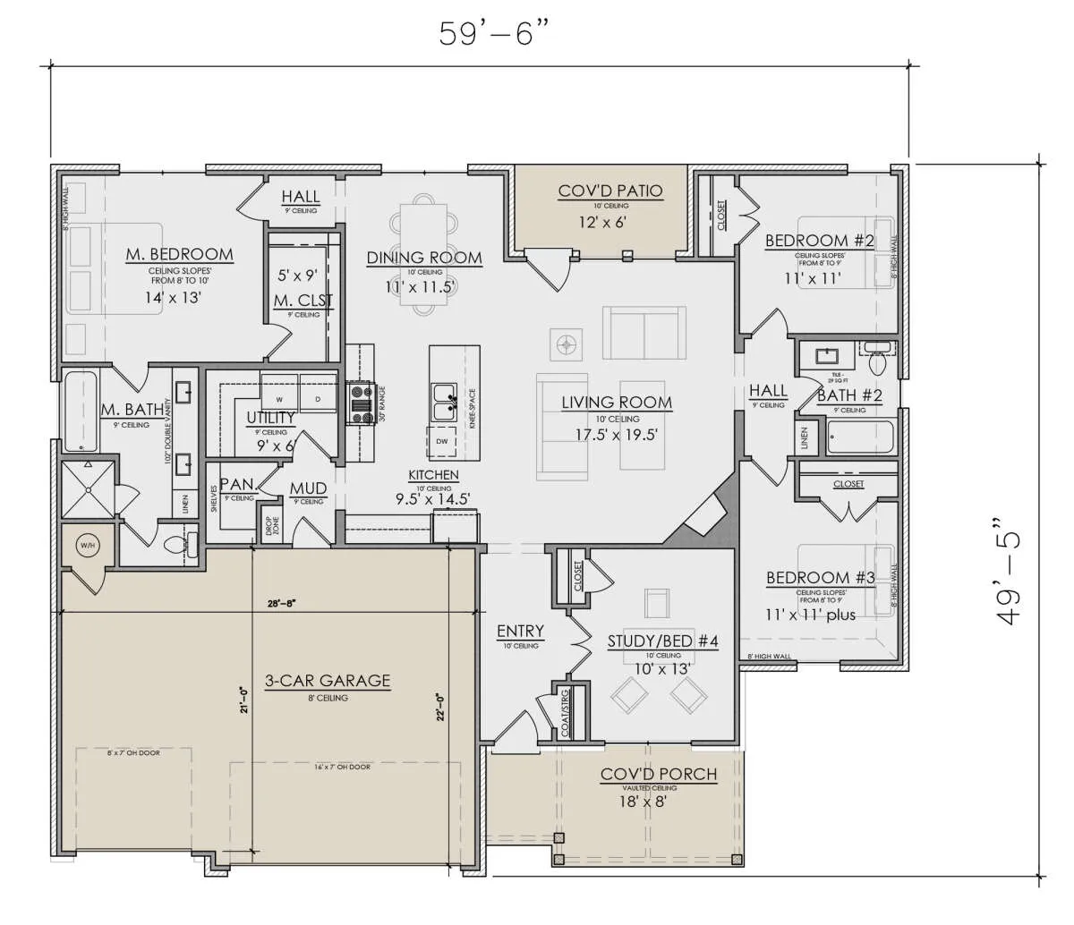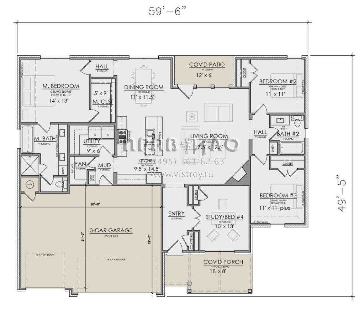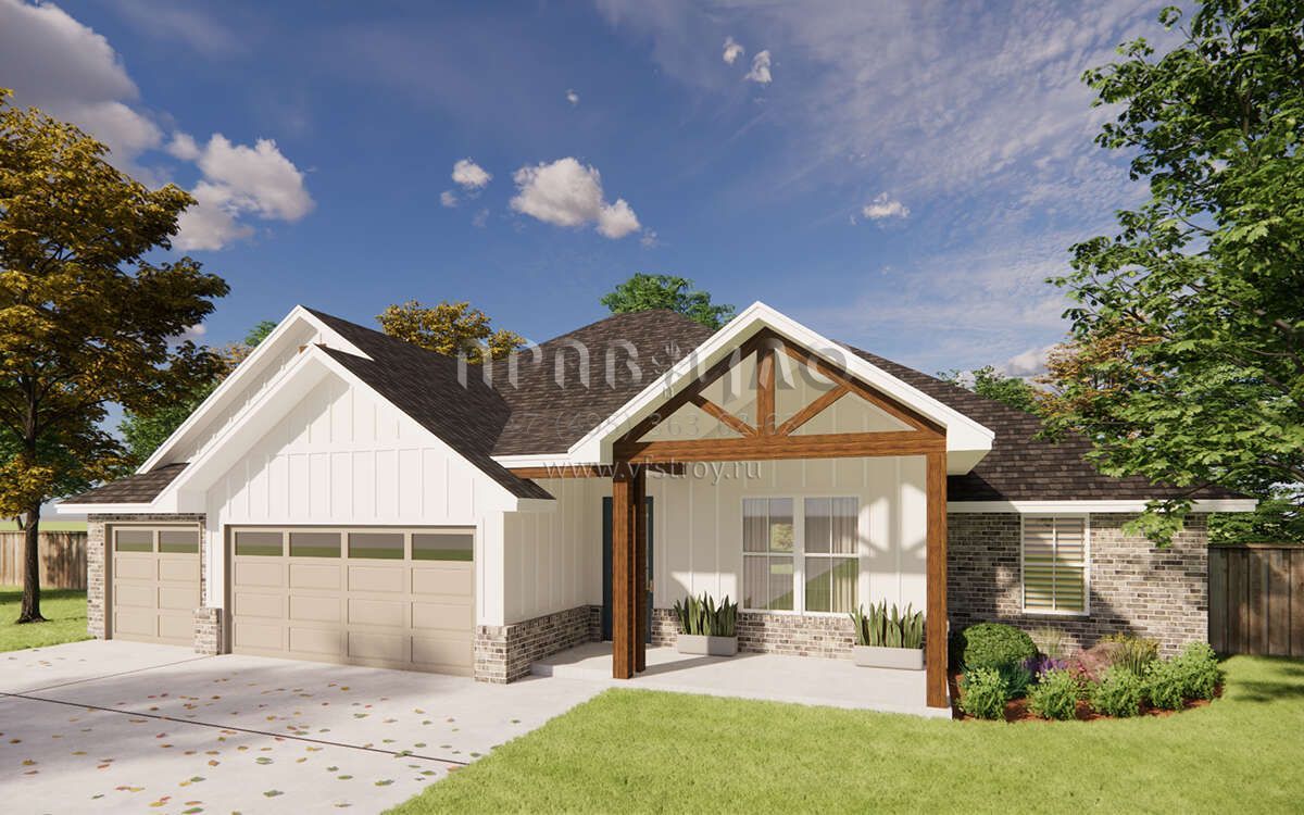 Проект одноэтажного дома с гаражом на три и более машин в американском стиле S5-174 (7071-00017)