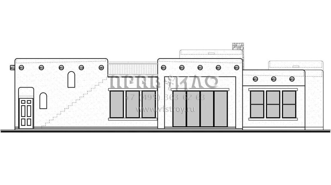 Большая площадь участка позволяет выбрать одноэтажный проект дома, особенно если в семье есть пожилые люди, инвалиды или маленькие дети.