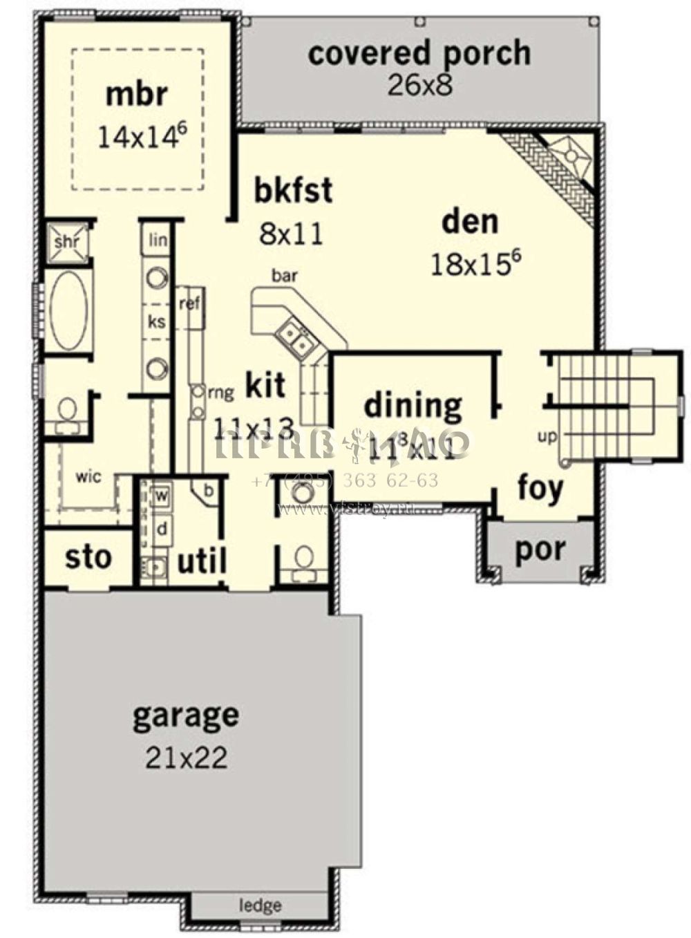 Поскольку этот проект разрабатывался иностранными архитекторами, для строительства дома требуется переработка проекта под действующие в России нормы. Данные визуализации проекта представлены для ознакомления с концепцией проекта. Проект разработан американским архитектурным бюро и представлен America's Best House Plans.