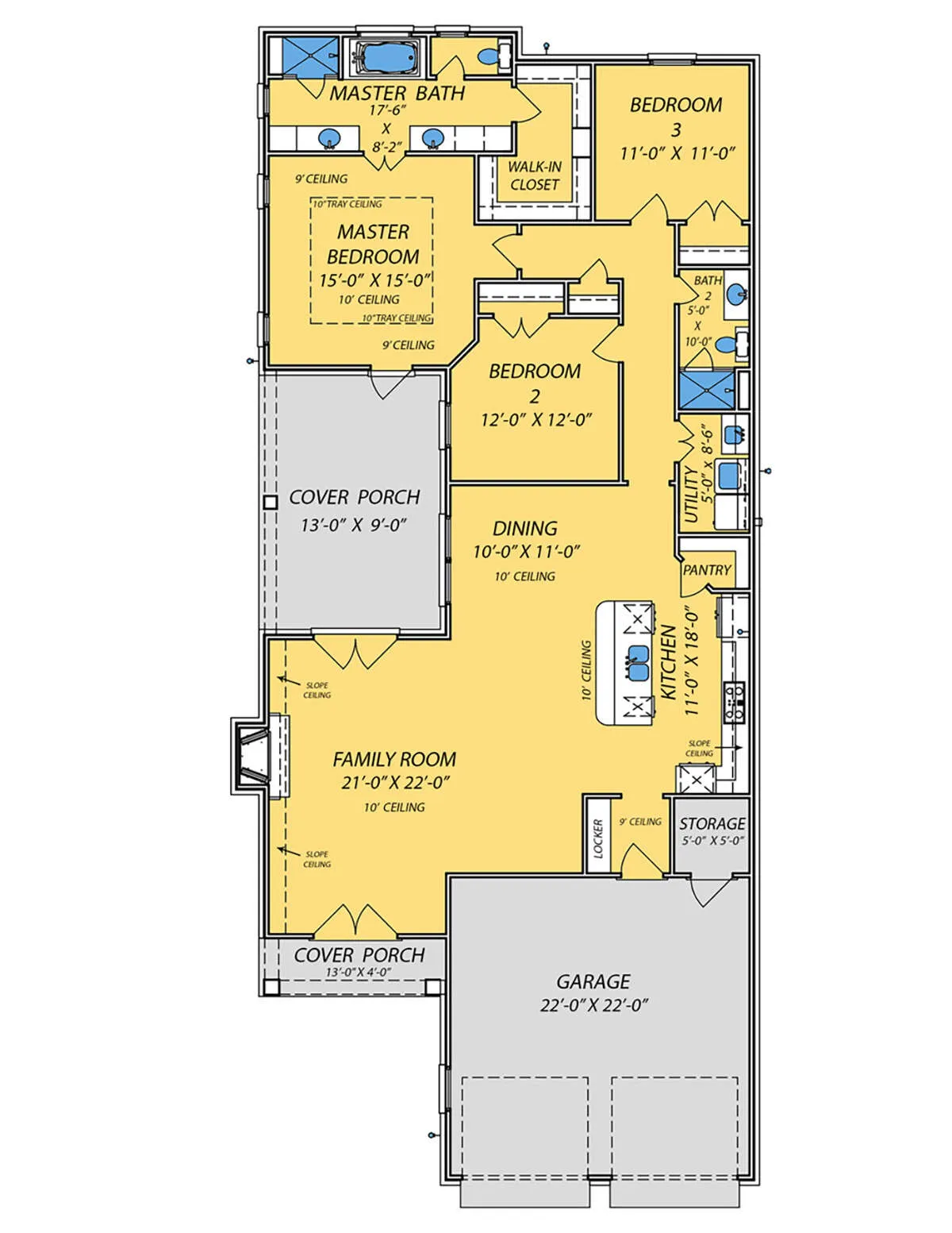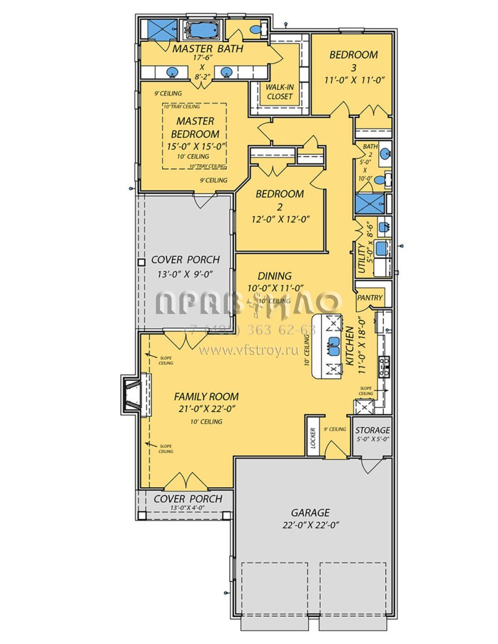 Проект одноэтажного дома с гаражом на две машины в стиле Ранчо S5-174 (9279-00024)