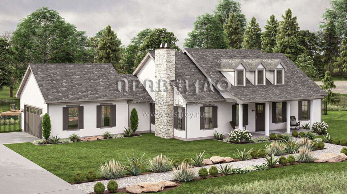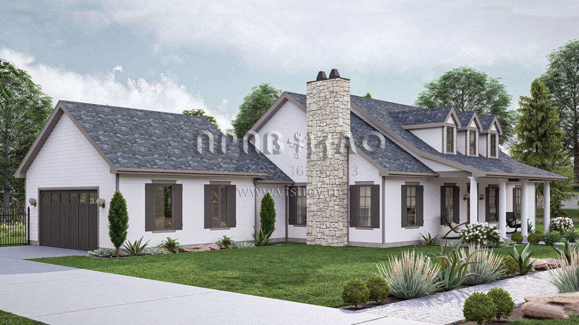 Проект одноэтажного дома с гаражом на две машины в стиле Особняк S5-174 (963-00894)