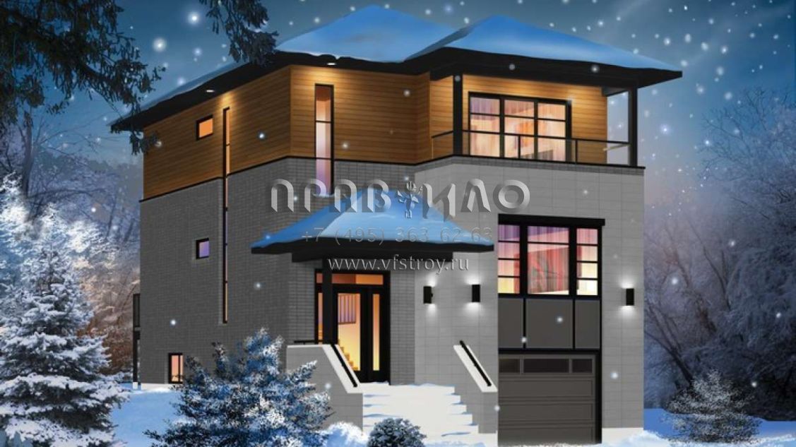 Проект двухэтажного дома с гаражом на одну машину в современном стиле S5-175 (034-01062)