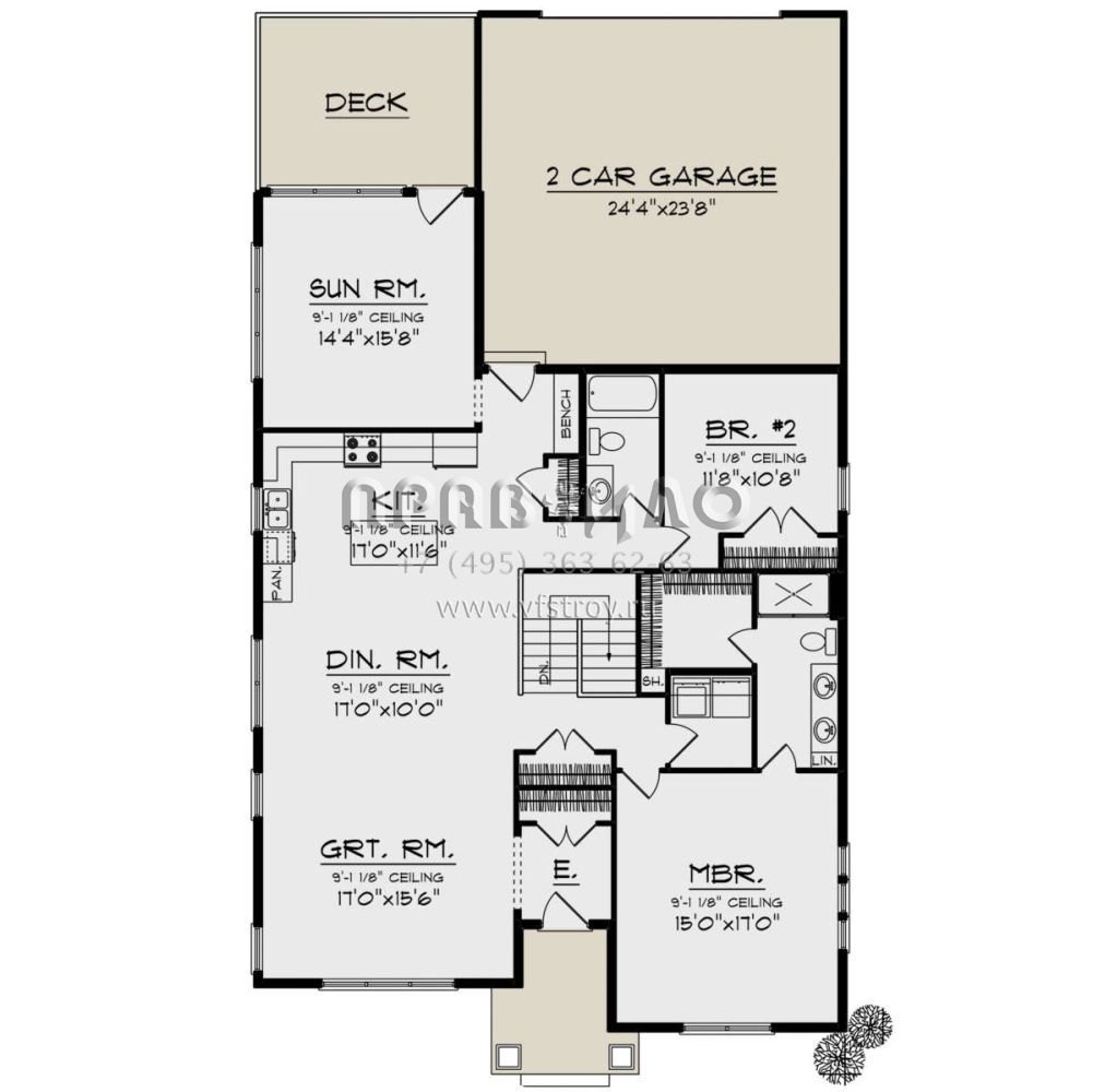 Проект одноэтажного дома с гаражом на две машины в американском стиле S5-175 (1020-00009)