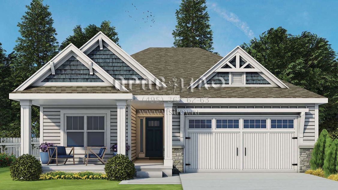 Проект одноэтажного дома с гаражом на две машины в американском стиле S5-175 (402-01523)