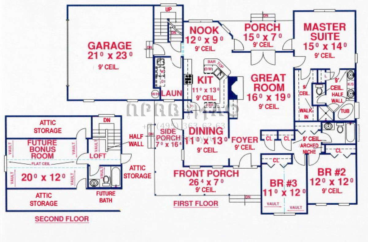 Проект одноэтажного дома с гаражом на две машины в стиле Ранчо S5-175 (4766-00030)