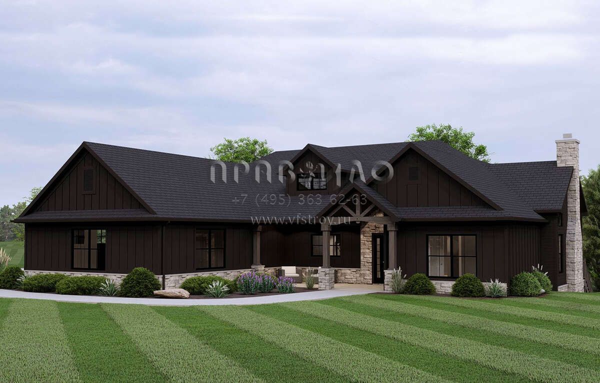 Проект одноэтажного дома с гаражом на три и более машин в американском стиле S5-175 (5032-00252)