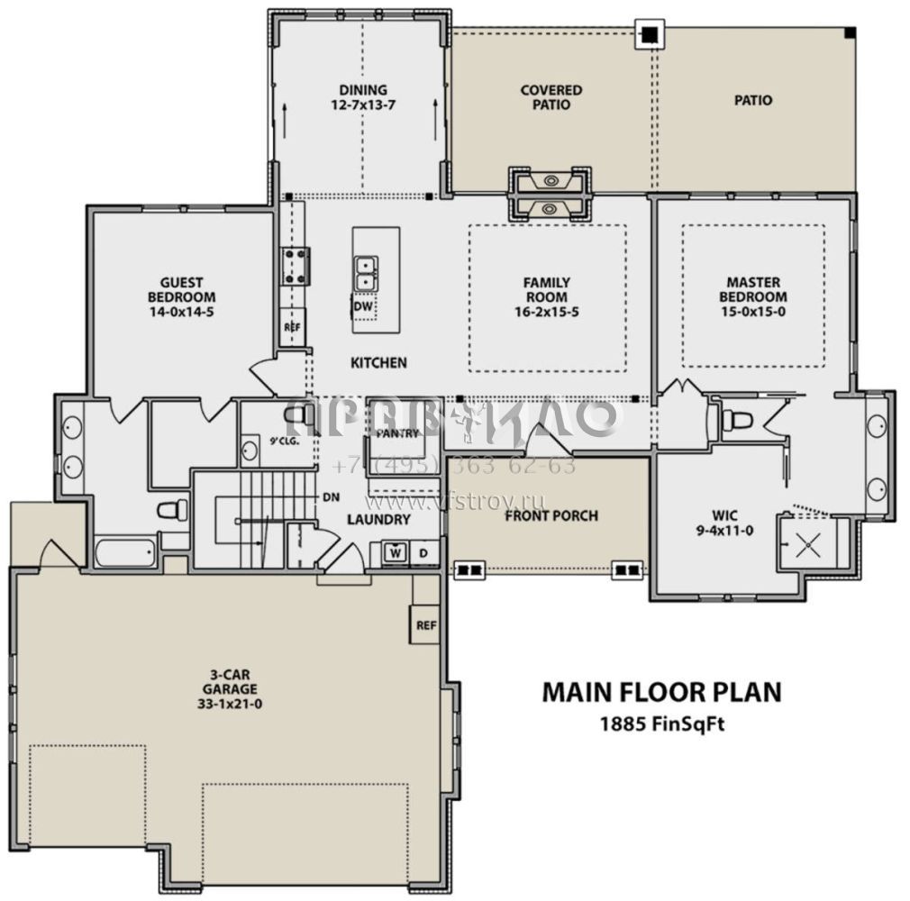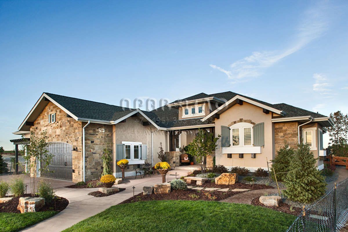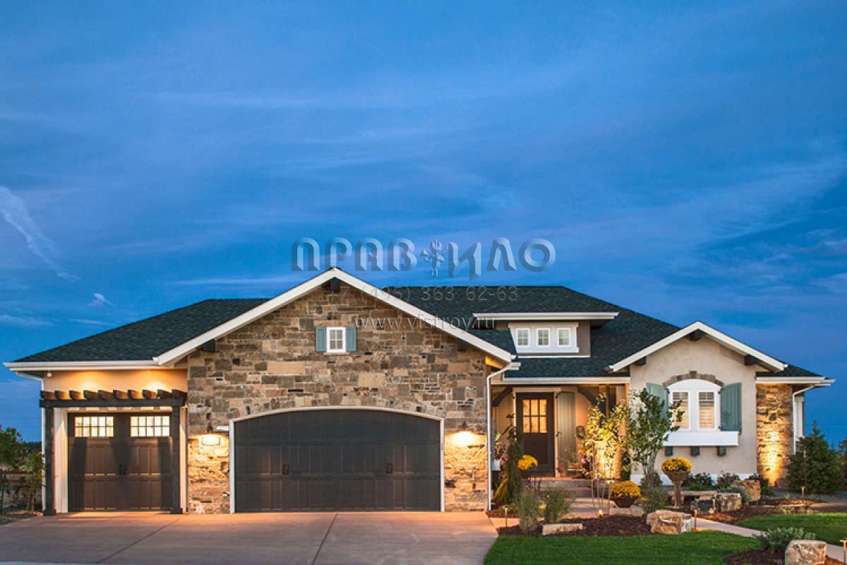 Проект одноэтажного дома с гаражом на три и более машин в стиле Ранчо S5-175 (5631-00064)