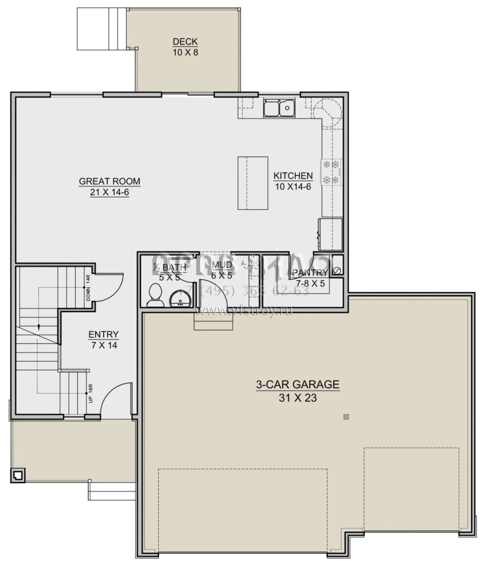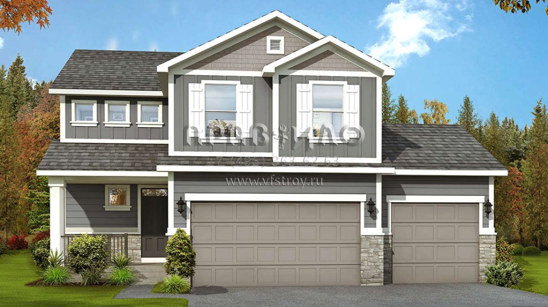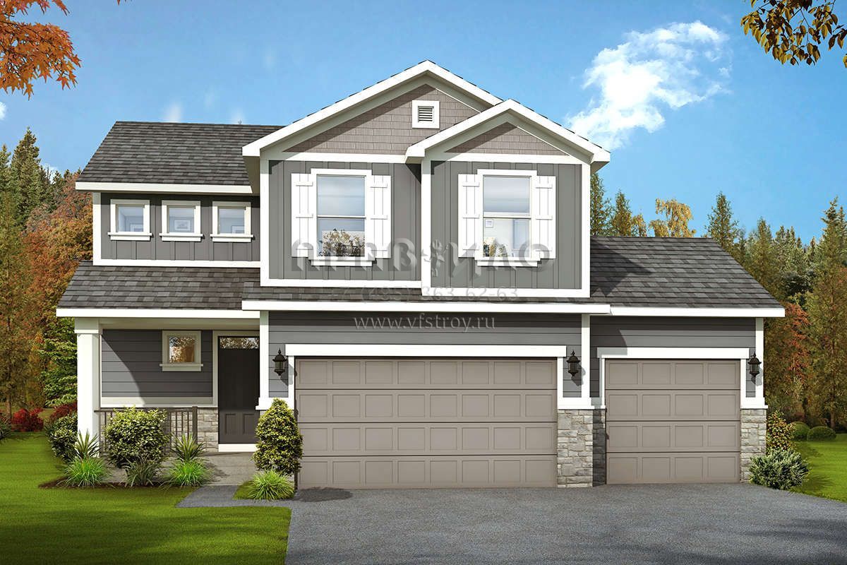 Проект двухэтажного дома с гаражом на три и более машин в стиле Ранчо S5-175 (7306-00007)