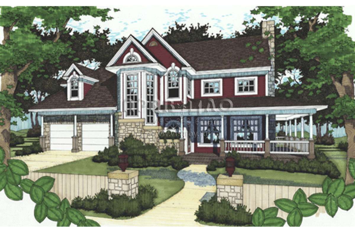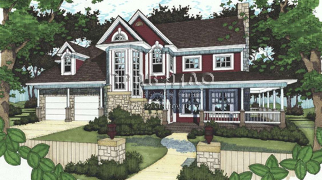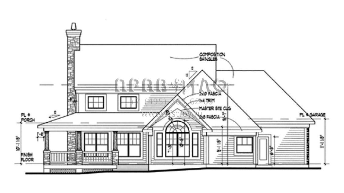 Проект двухэтажного дома с гаражом на две машины в стиле Ранчо S5-175 (9401-00035)