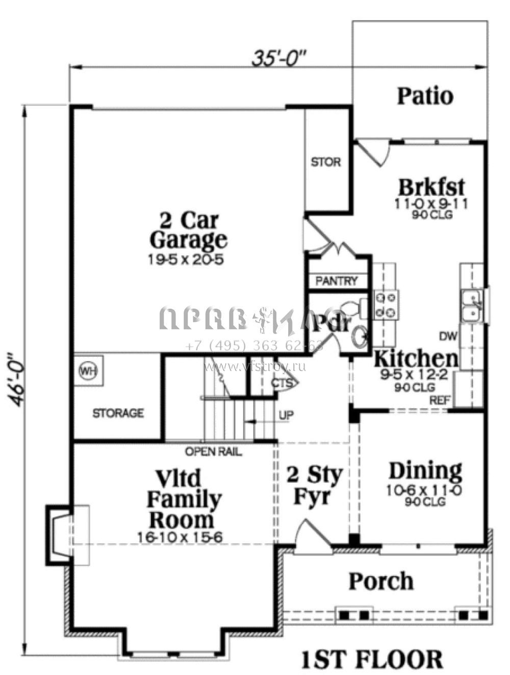 Проект двухэтажного дома с гаражом на две машины в стиле Ранчо S5-176 (009-00105)
