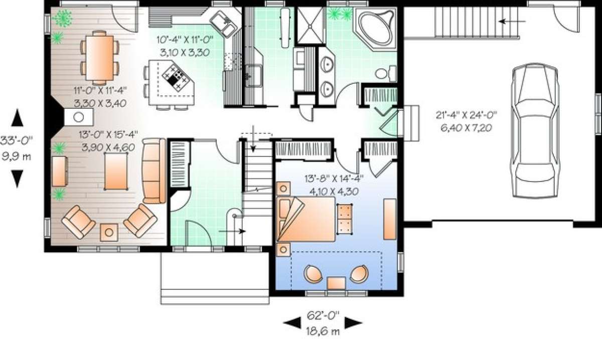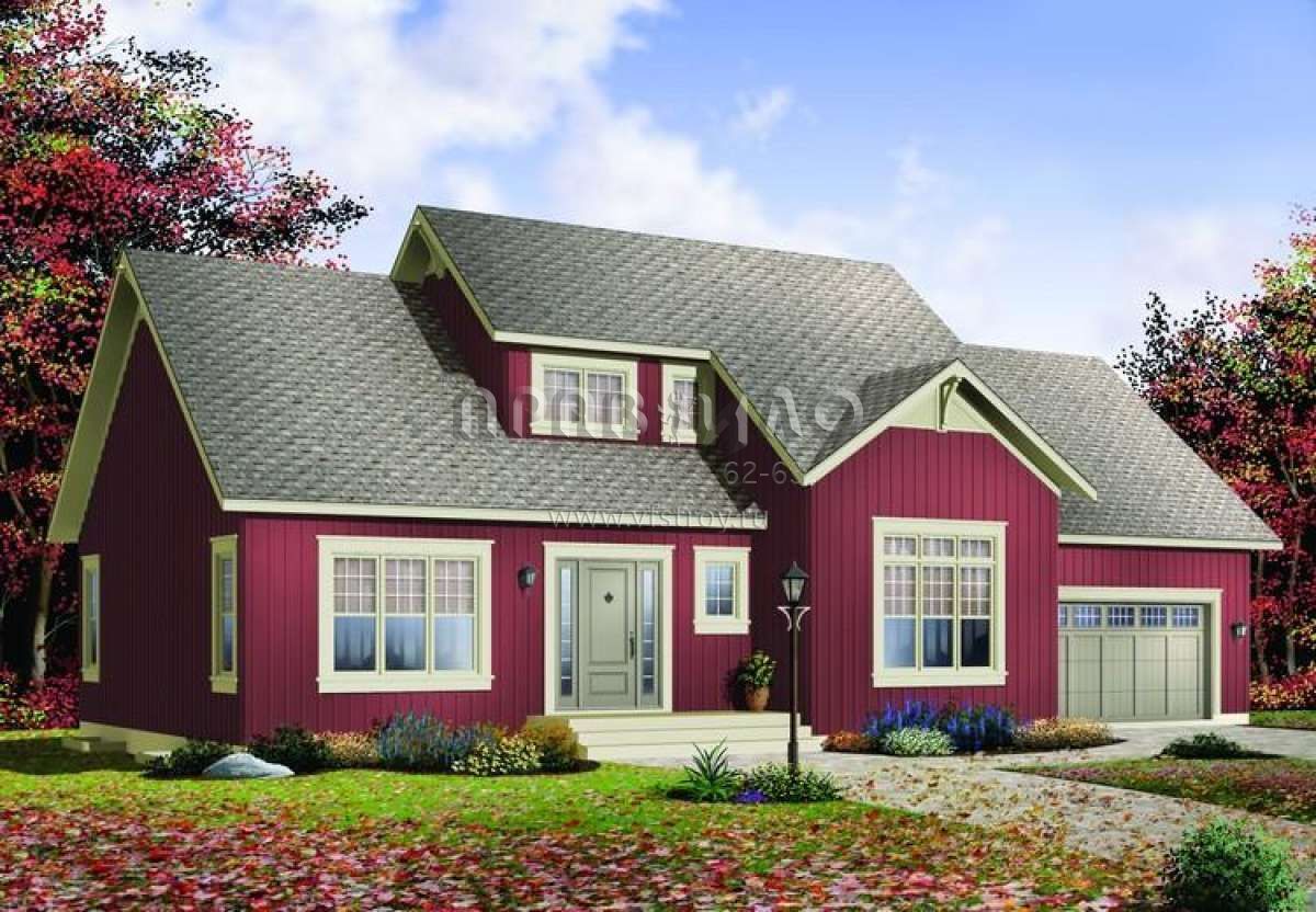 Проект двухэтажного дома с гаражом на две машины в стиле Ранчо S5-176 (034-00424)