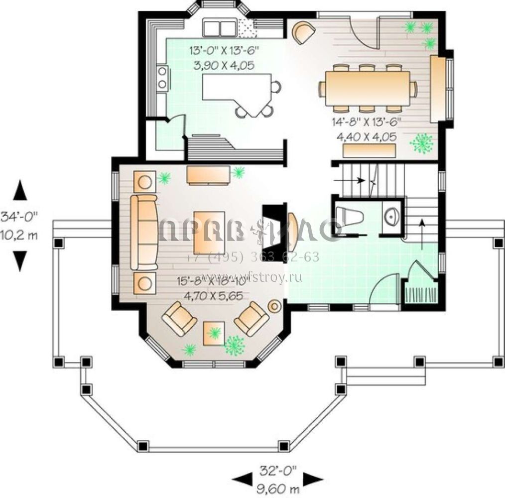 Проект двухэтажного дома без гаража в английском стиле S5-176 (034-00454)
