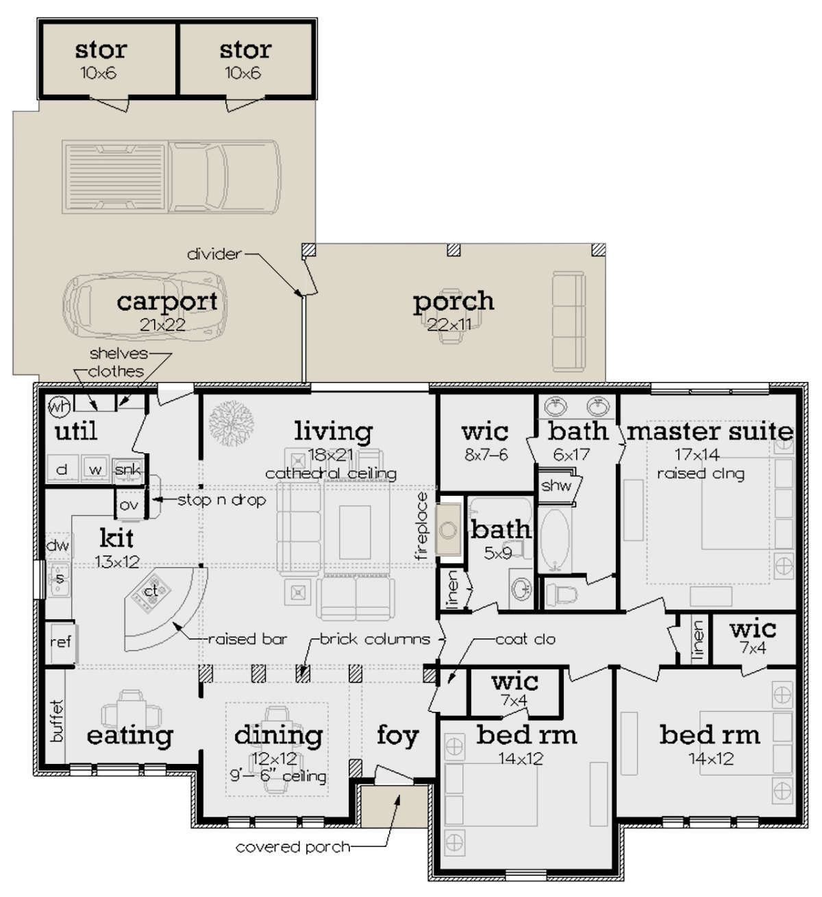 S5-176 (048-00269) Это иностранный проект, для которого требуется адаптация под нормы, действующие в Российской Федерации. Вы видите проект дома в стиле Ранчо. В этом доме сочетаются черты сельской постройки и аскетичность лофта. Внутри жильцы смогут проводить время с максимальным комфортом. Обратим внимание, что сейчас на планировках все размеры представлены в футах. Для перевода в метры вам необходимо значение в футах умножить на 0,3048.