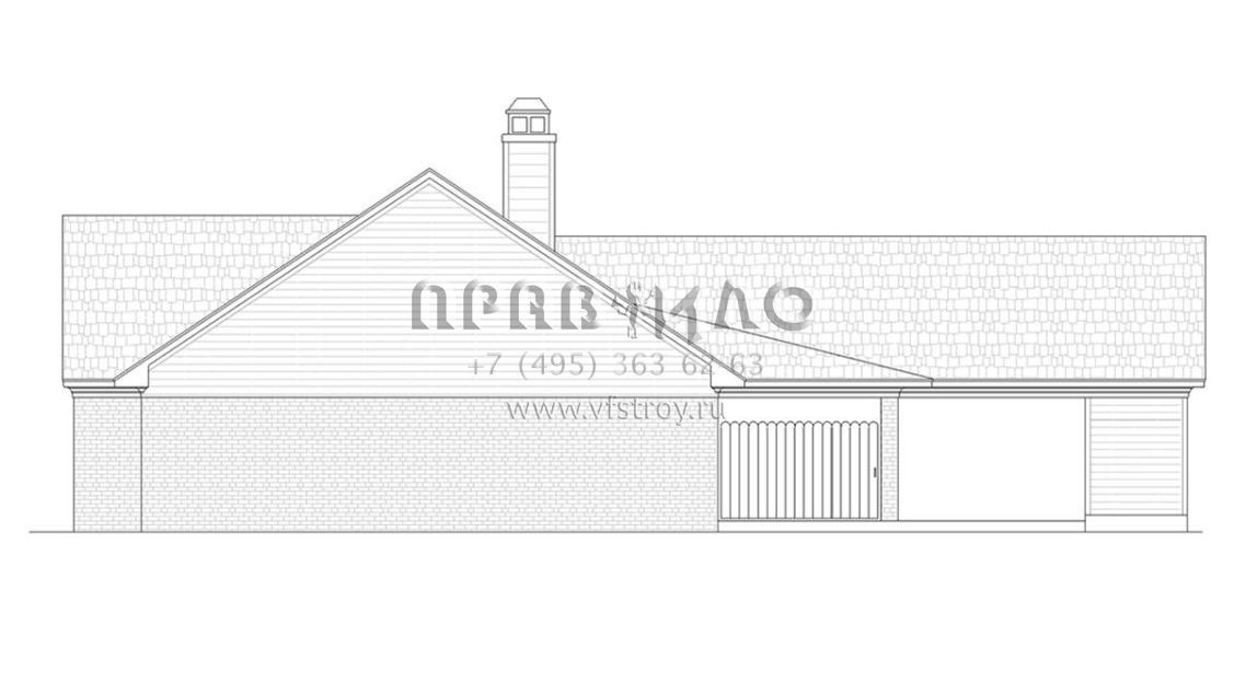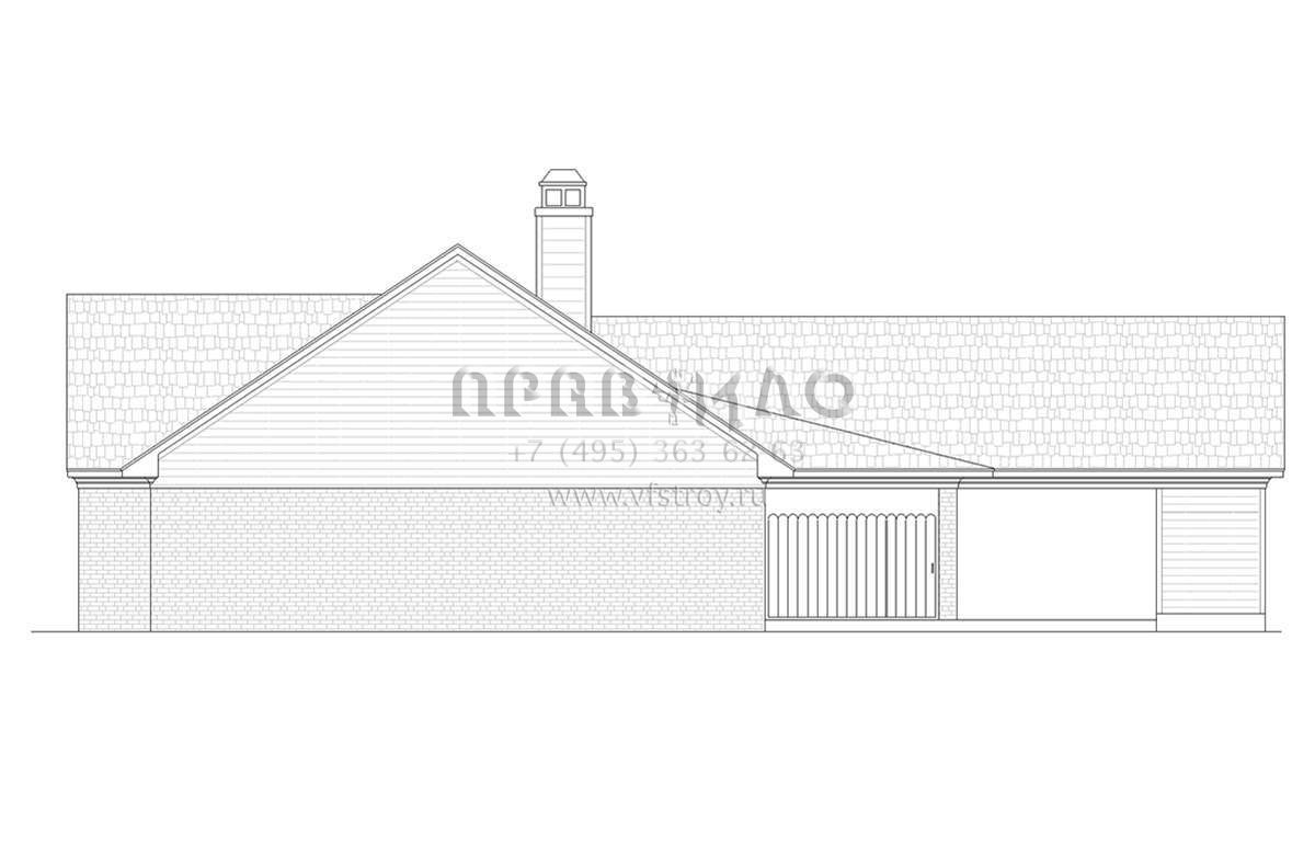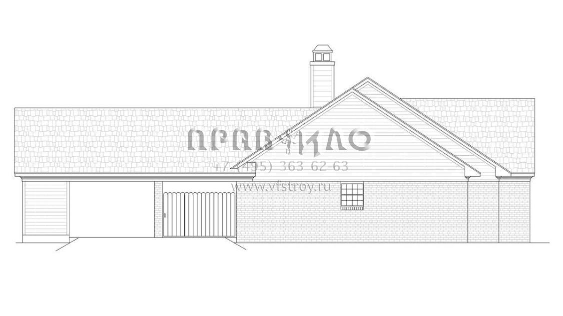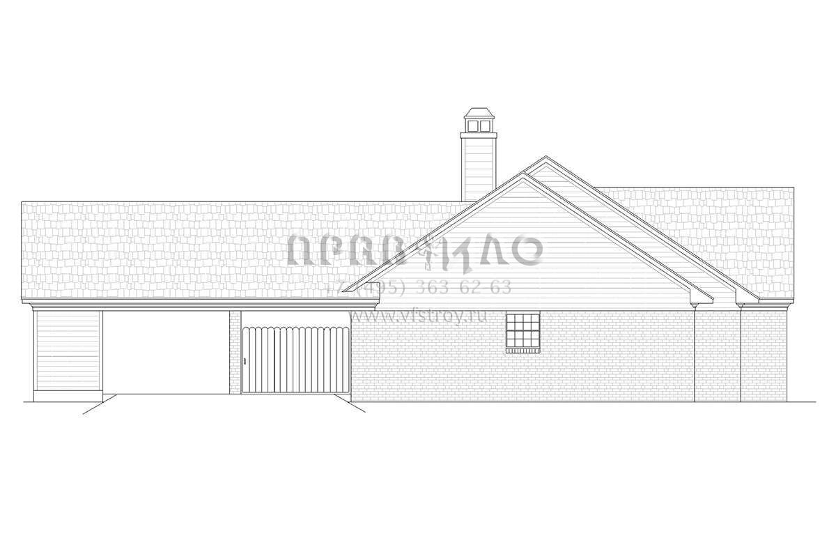 Это проект одноэтажного дома с гаражом на две машины жилой площадью 176 кв.м. Длина дома 19.8 м, ширина 17.7 м, высота 6.4 м. В доме три спальни и два санузла.