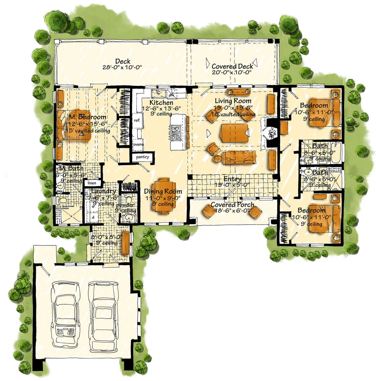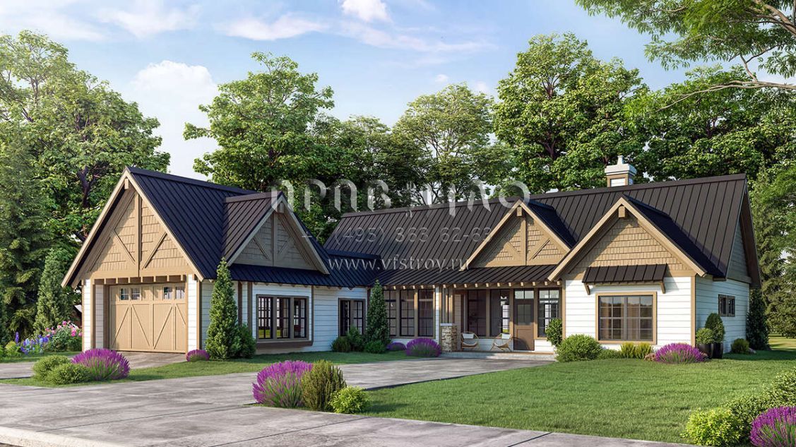 Проект одноэтажного дома с гаражом на две машины в американском стиле S5-176 (1907-00060)
