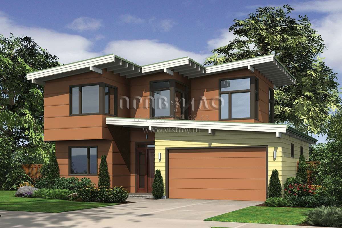 Проект двухэтажного дома с гаражом на две машины в современном стиле S5-176 (2559-00777)