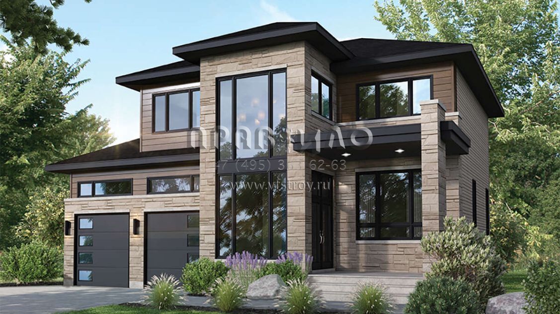 Проект двухэтажного дома с гаражом на две машины в современном стиле S5-176 (6146-00390)