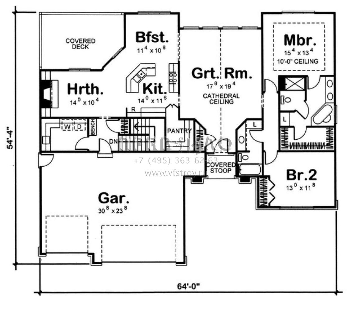 S5-176 (963-00065) Это иностранный проект, для которого требуется адаптация под нормы, действующие в Российской Федерации. Вы видите проект дома в английском стиле. В этом доме сочетаются черты сельской постройки и аскетичность лофта. Внутри жильцы смогут проводить время с максимальным комфортом. Обратим внимание, что сейчас на планировках все размеры представлены в футах. Для перевода в метры вам необходимо значение в футах умножить на 0,3048.