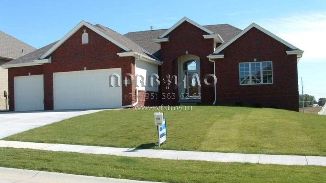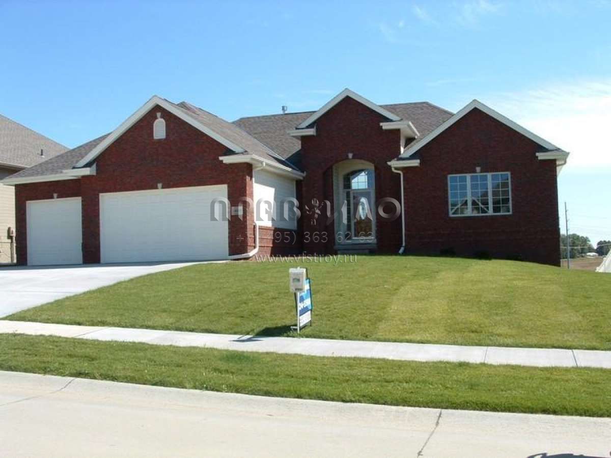 Это проект одноэтажного дома с гаражом на три и более машин жилой площадью 176 кв.м. Длина дома 16.5 м, ширина 19.5 м, высота 6.7 м. В доме две спальни и два санузла.