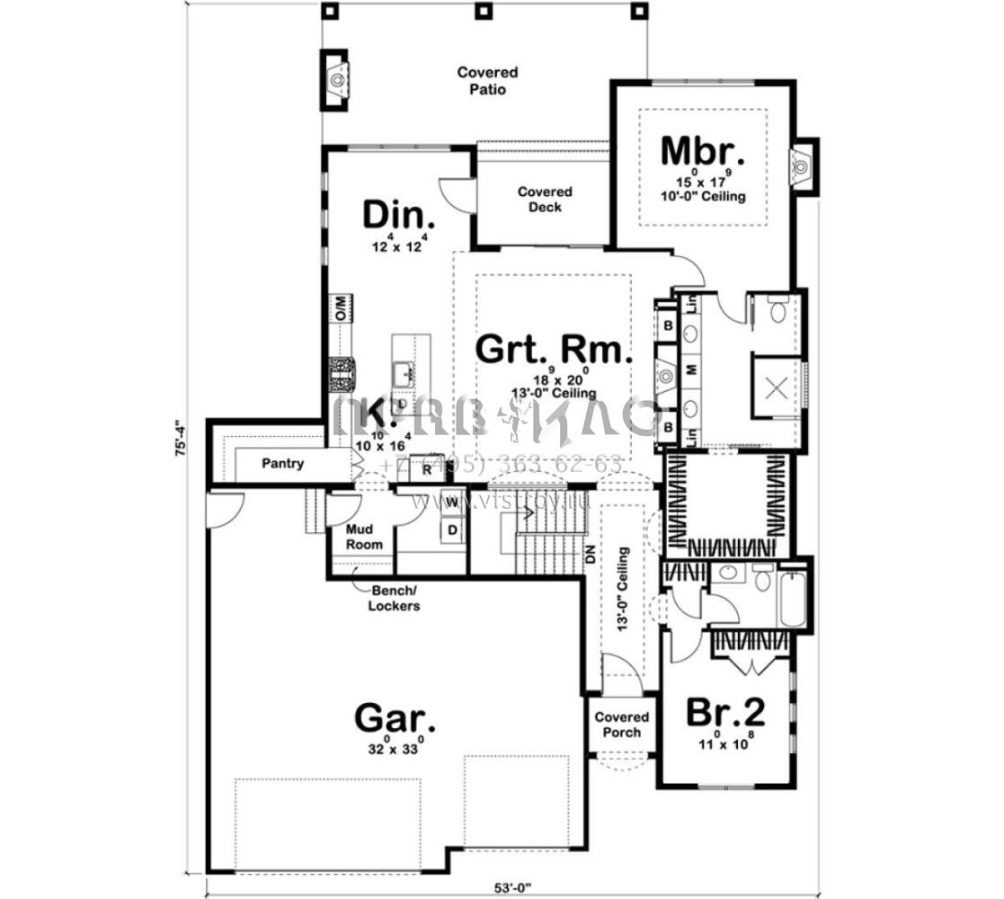 Проект одноэтажного дома с гаражом на три и более машин в стиле Ранчо S5-176 (963-00283)