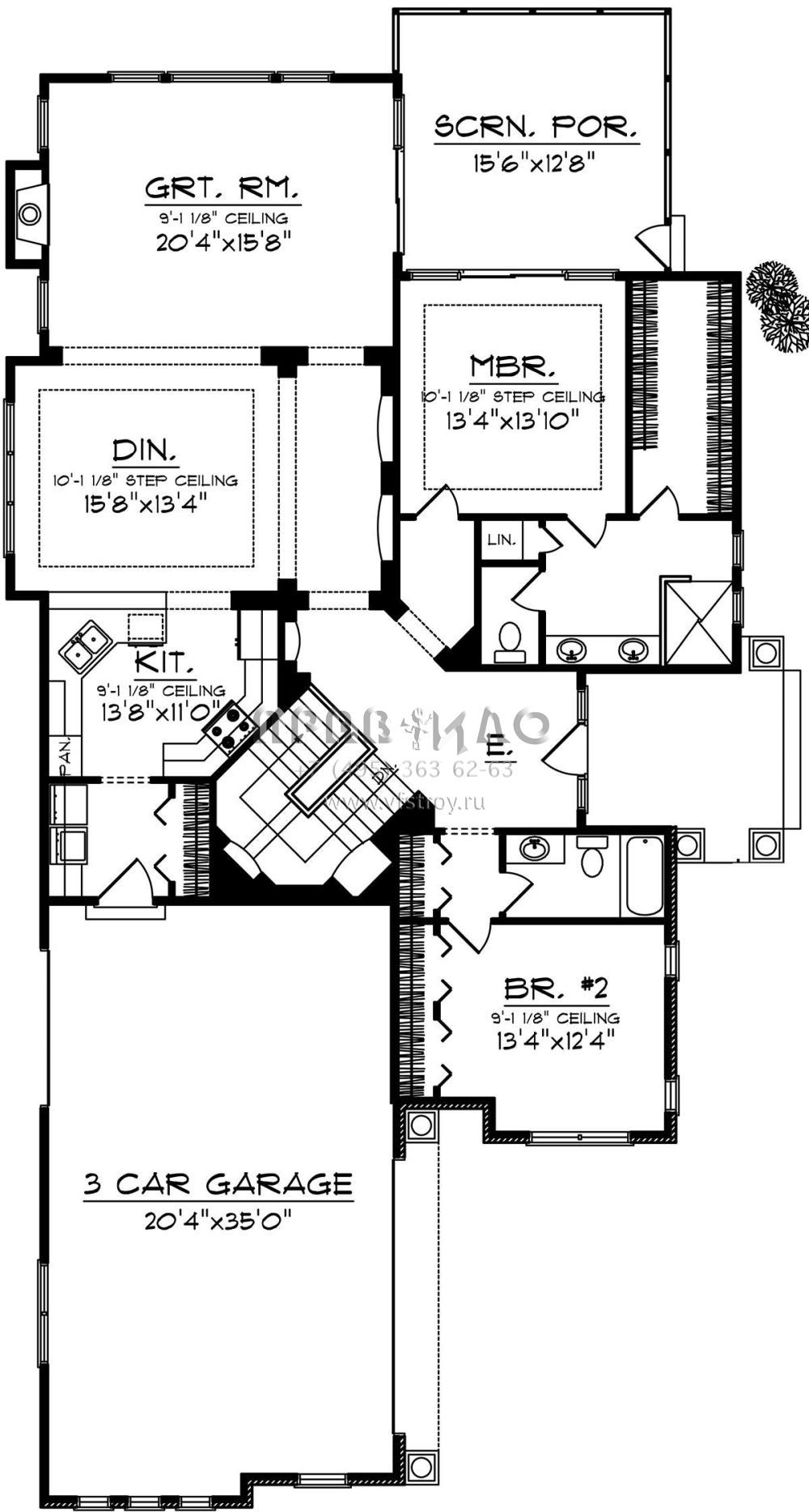 Проект одноэтажного дома с гаражом на три и более машин в стиле Ранчо S5-177 (1020-00289)