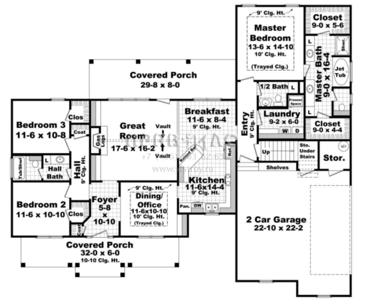 Поскольку этот проект разрабатывался иностранными архитекторами, для строительства дома требуется переработка проекта под действующие в России нормы. Данные визуализации проекта представлены для ознакомления с концепцией проекта. Проект разработан американским архитектурным бюро и представлен America's Best House Plans.