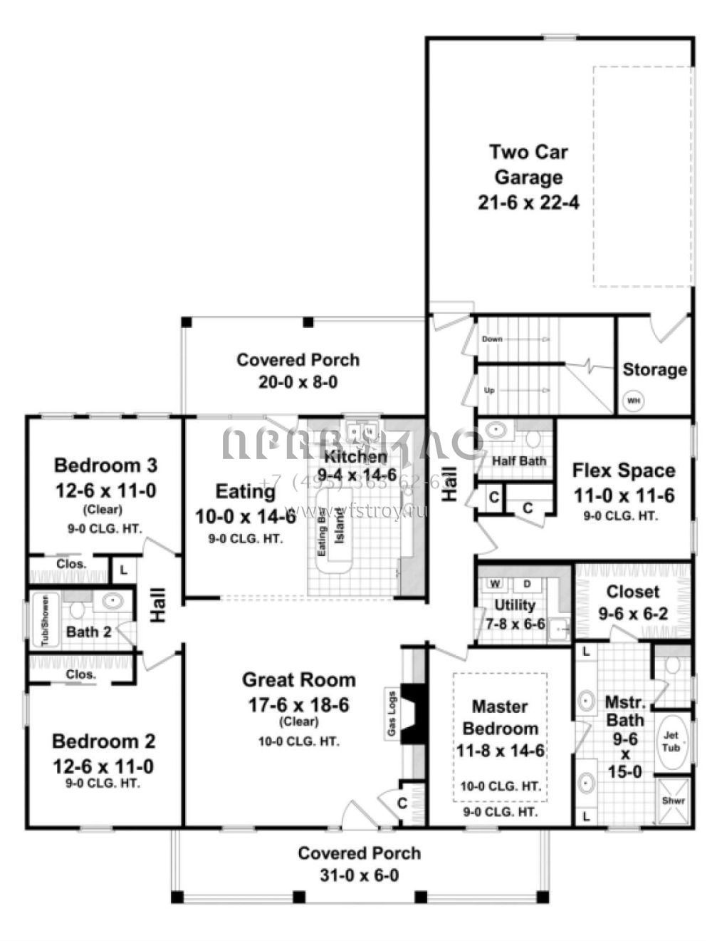 Проект двухэтажного дома с гаражом на две машины в стиле Ранчо S5-177 (348-00087)
