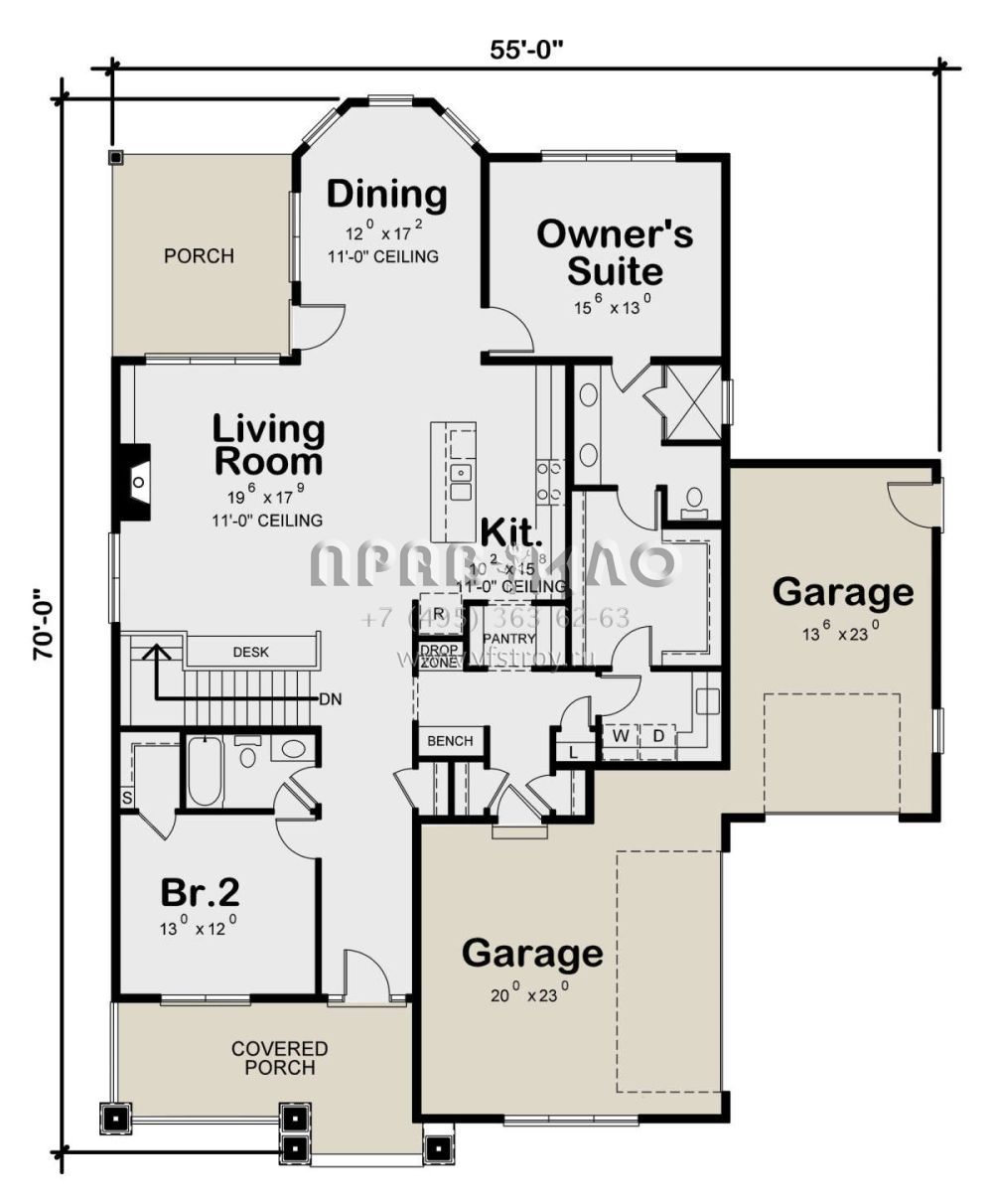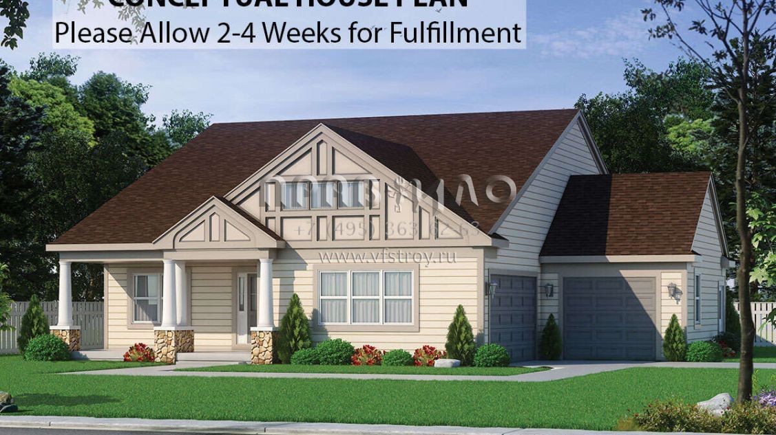 Проект одноэтажного дома с гаражом на три и более машин в стиле Ранчо S5-177 (402-01588)