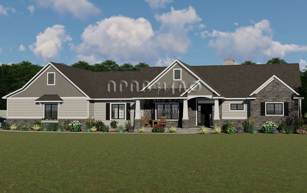 Проект одноэтажного дома с гаражом на две машины в американском стиле S5-177 (5032-00013)