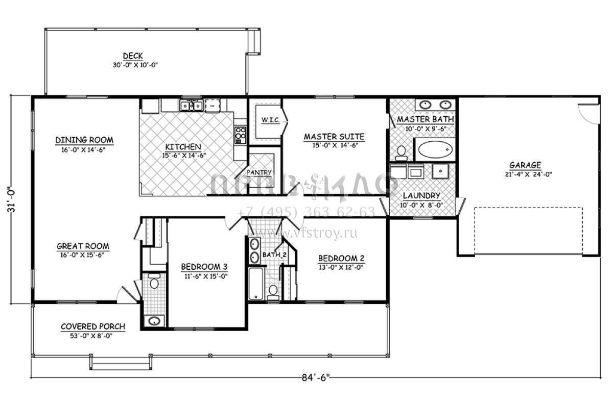 Проект одноэтажного дома с гаражом на две машины в стиле Ранчо S5-177 (526-00062)