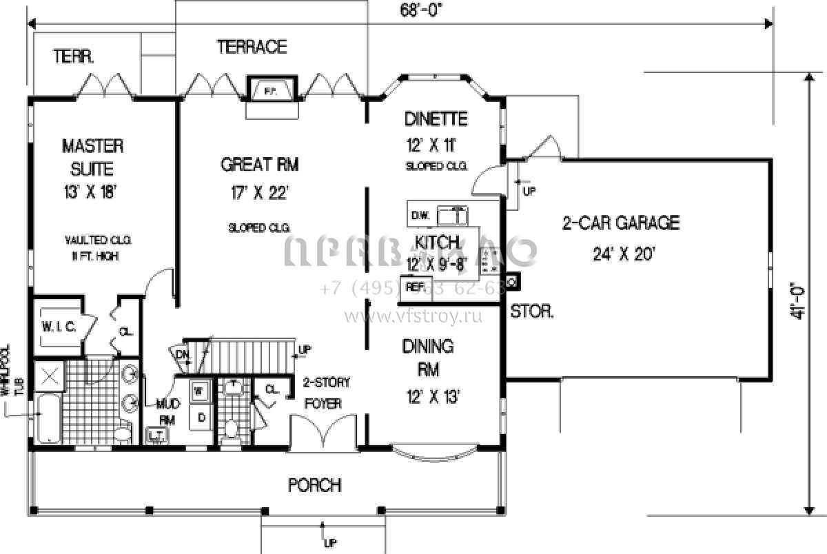 Проект двухэтажного дома с гаражом на две машины в стиле Ранчо S5-178 (033-00107)