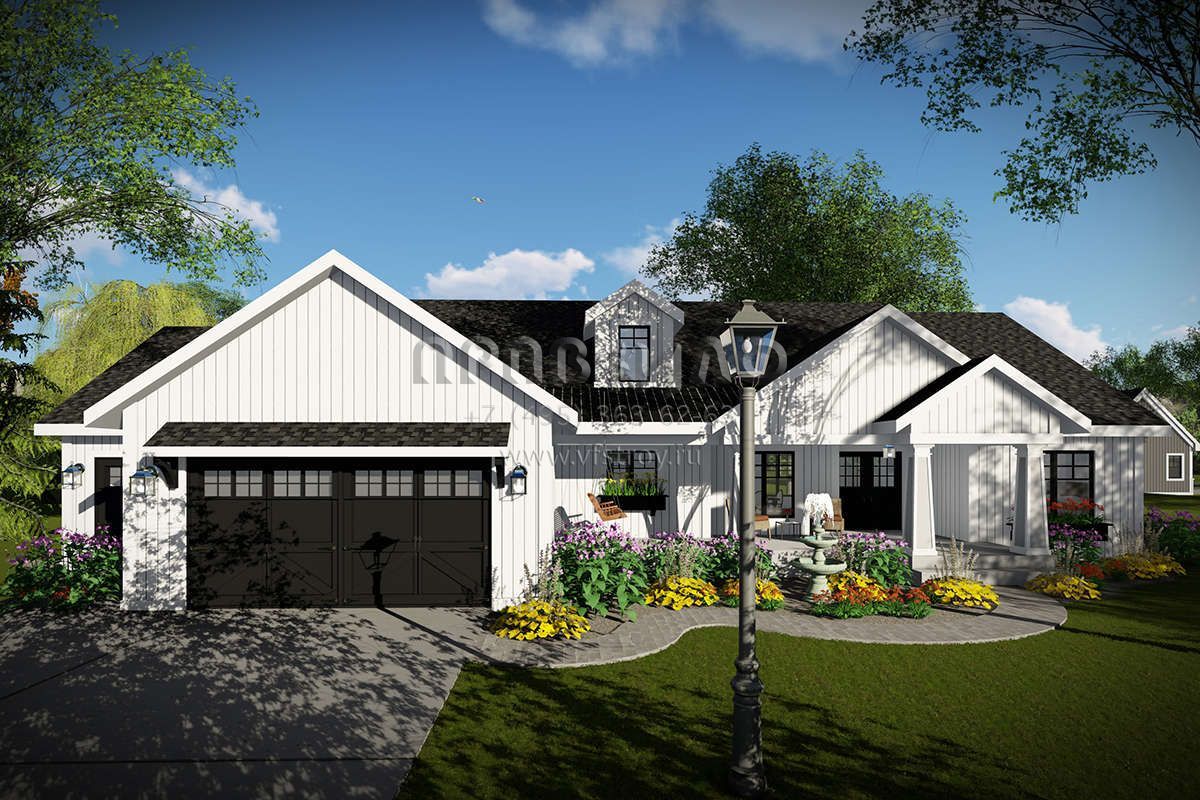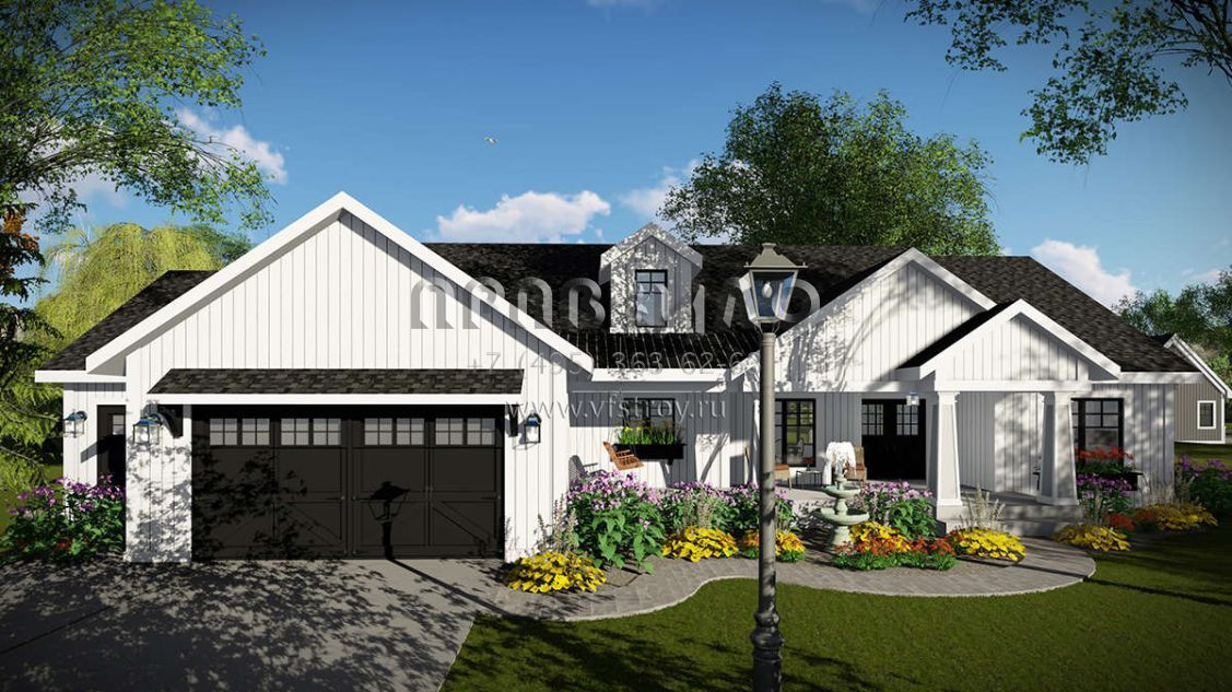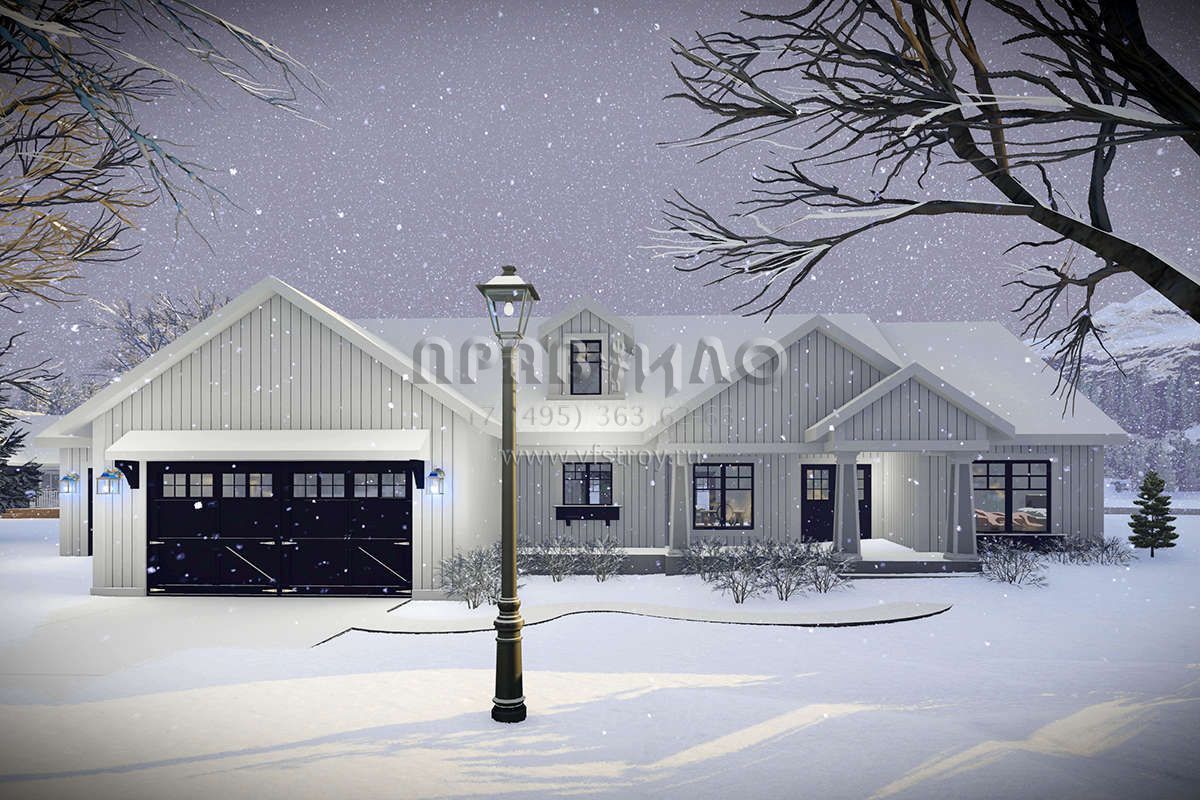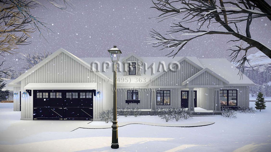 Проект одноэтажного дома с гаражом на три и более машин в американском стиле S5-178 (1020-00331)
