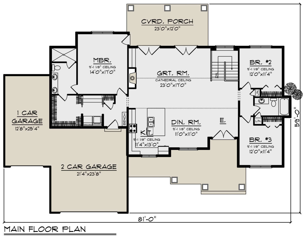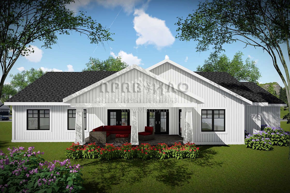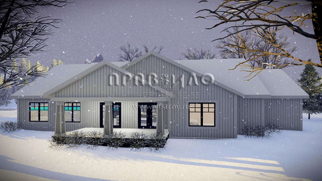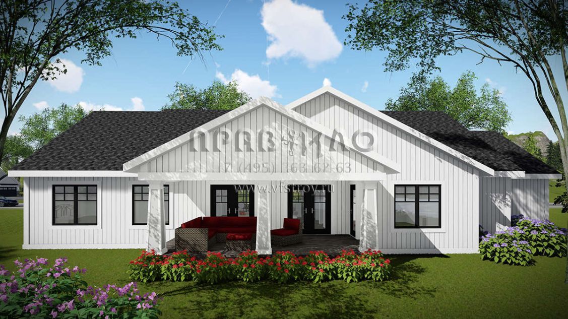 Проект одноэтажного дома с гаражом на три и более машин в американском стиле S5-178 (1020-00331)