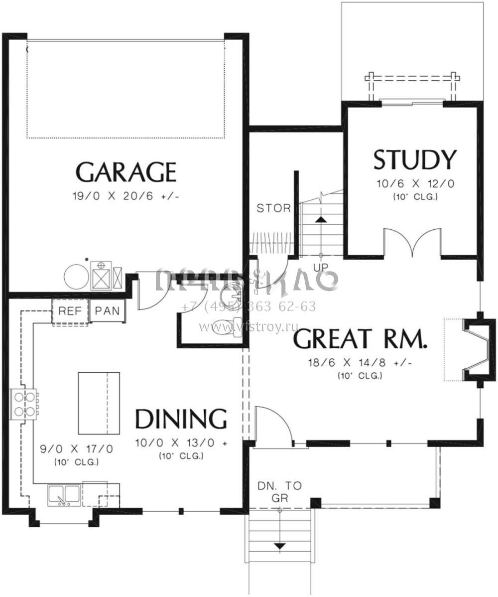 S5-178 (2559-00751) Это иностранный проект, для которого требуется адаптация под нормы, действующие в Российской Федерации. Вы видите проект дома в стиле Ранчо. В этом доме сочетаются черты сельской постройки и аскетичность лофта. Внутри жильцы смогут проводить время с максимальным комфортом. Обратим внимание, что сейчас на планировках все размеры представлены в футах. Для перевода в метры вам необходимо значение в футах умножить на 0,3048.