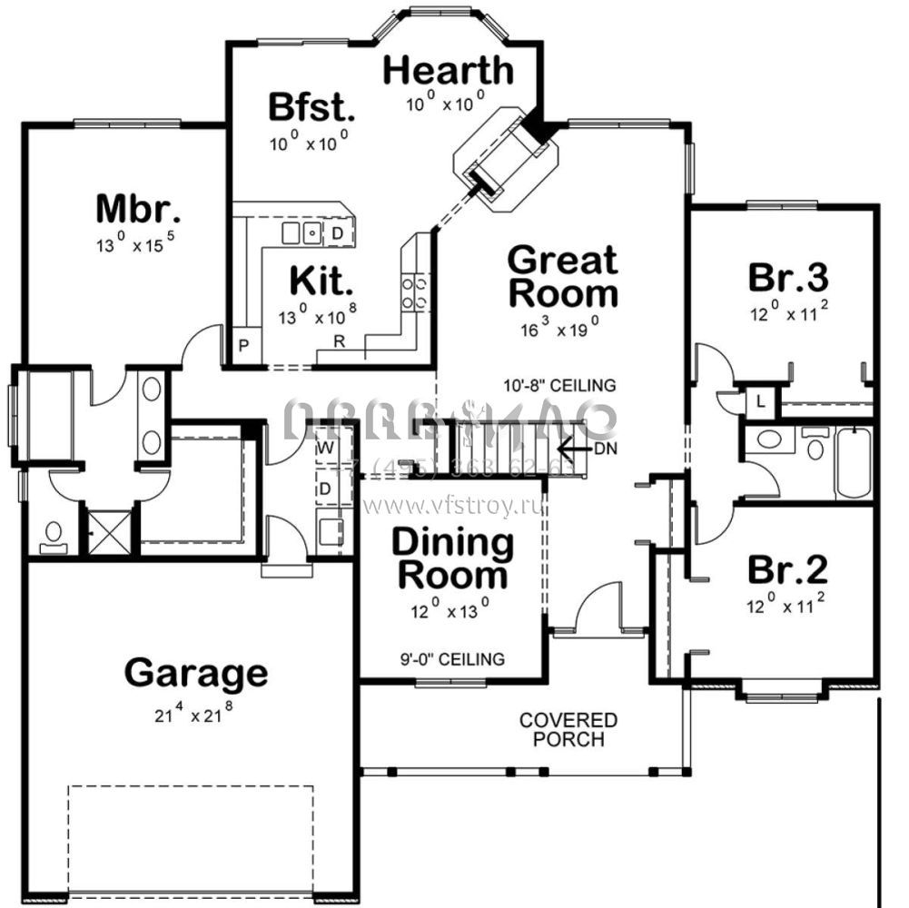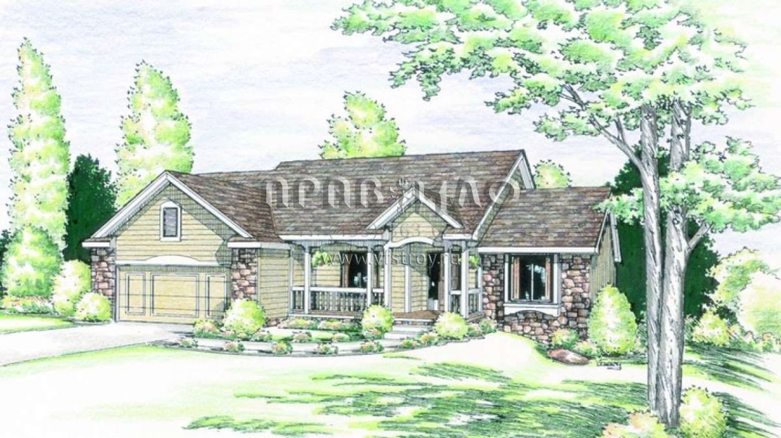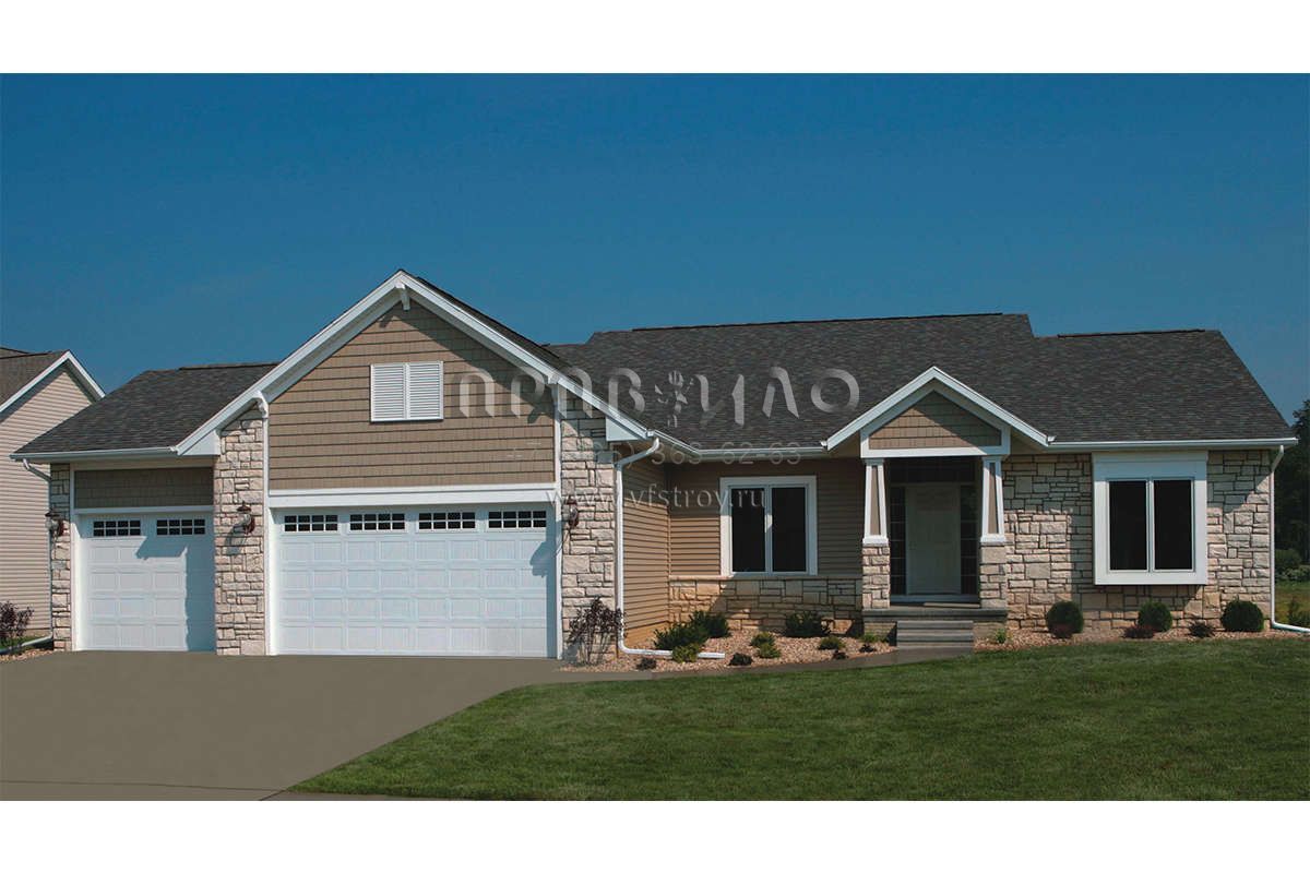 Проект одноэтажного дома с гаражом на две машины в стиле Ранчо S5-178 (402-00727)