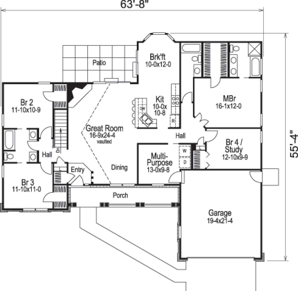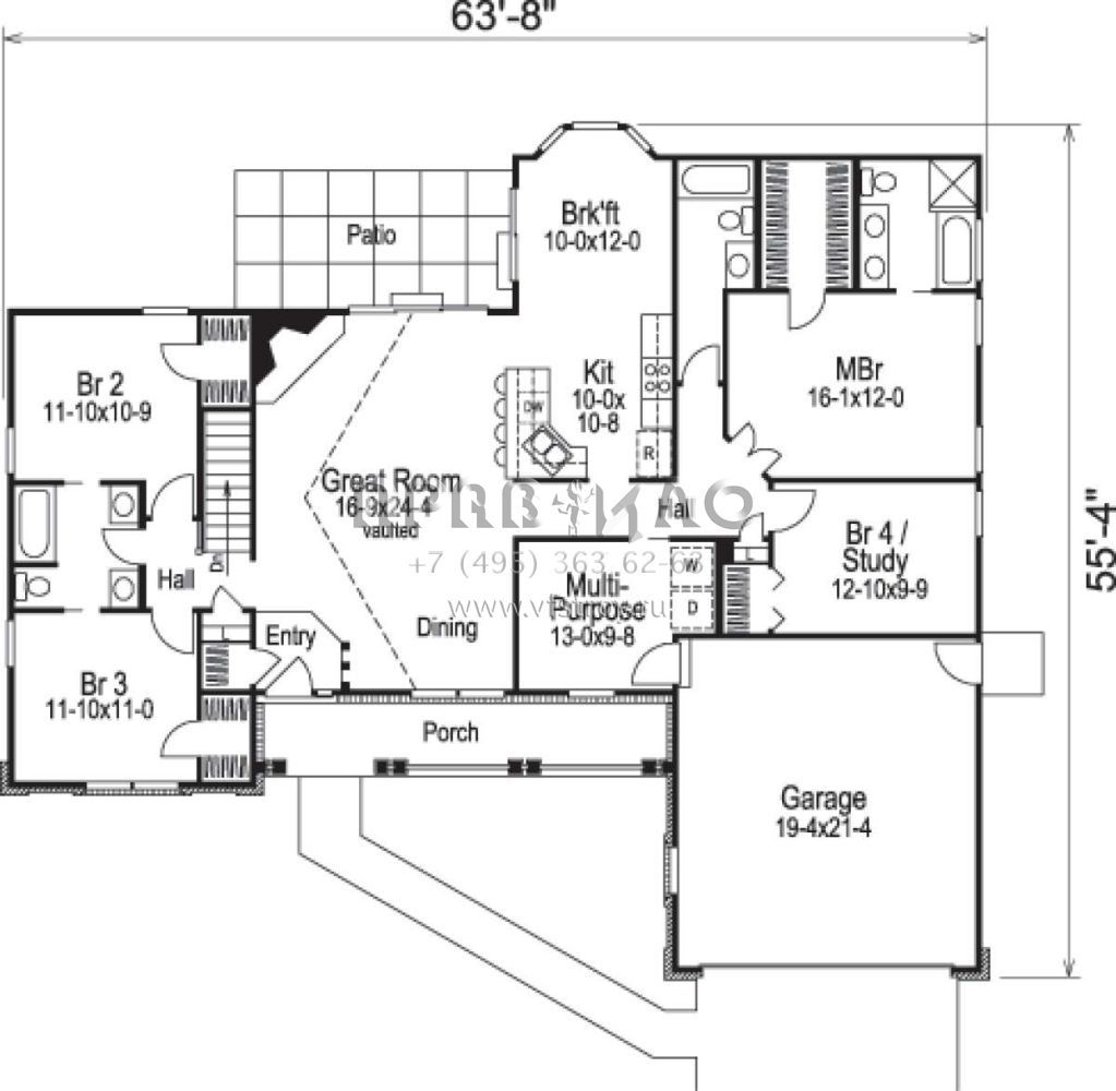 Проект одноэтажного дома с гаражом на две машины в стиле Ранчо S5-178 (5633-00130)