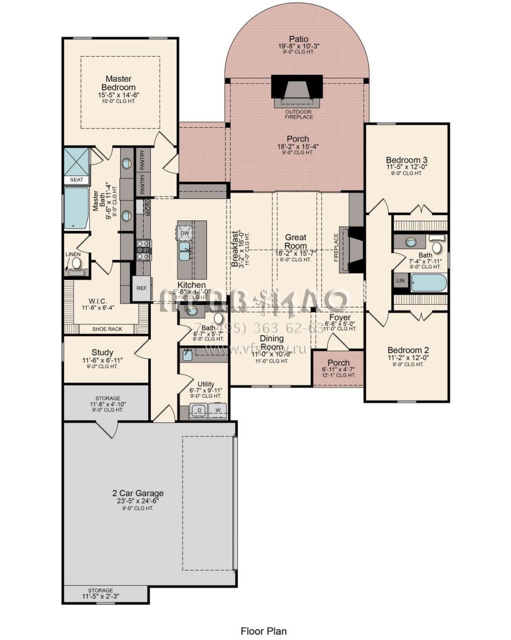Проект одноэтажного дома с гаражом на две машины в стиле Ранчо S5-178 (5995-00009)
