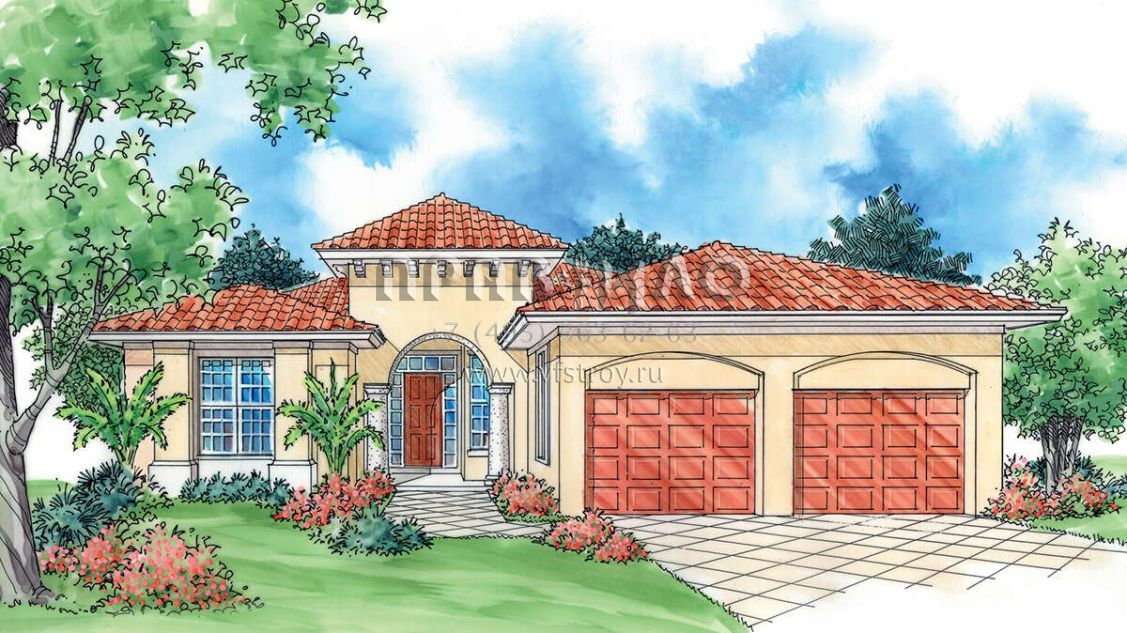 Проект одноэтажного дома с гаражом на две машины в прибрежном стиле S5-178 (8436-00042)