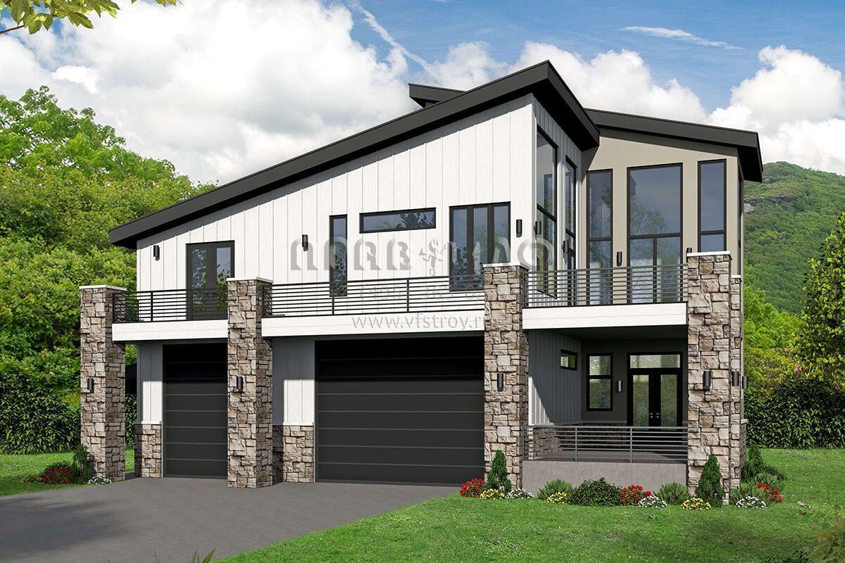 Проект двухэтажного дома с гаражом на три и более машин в современном стиле S5-178 (940-00424)