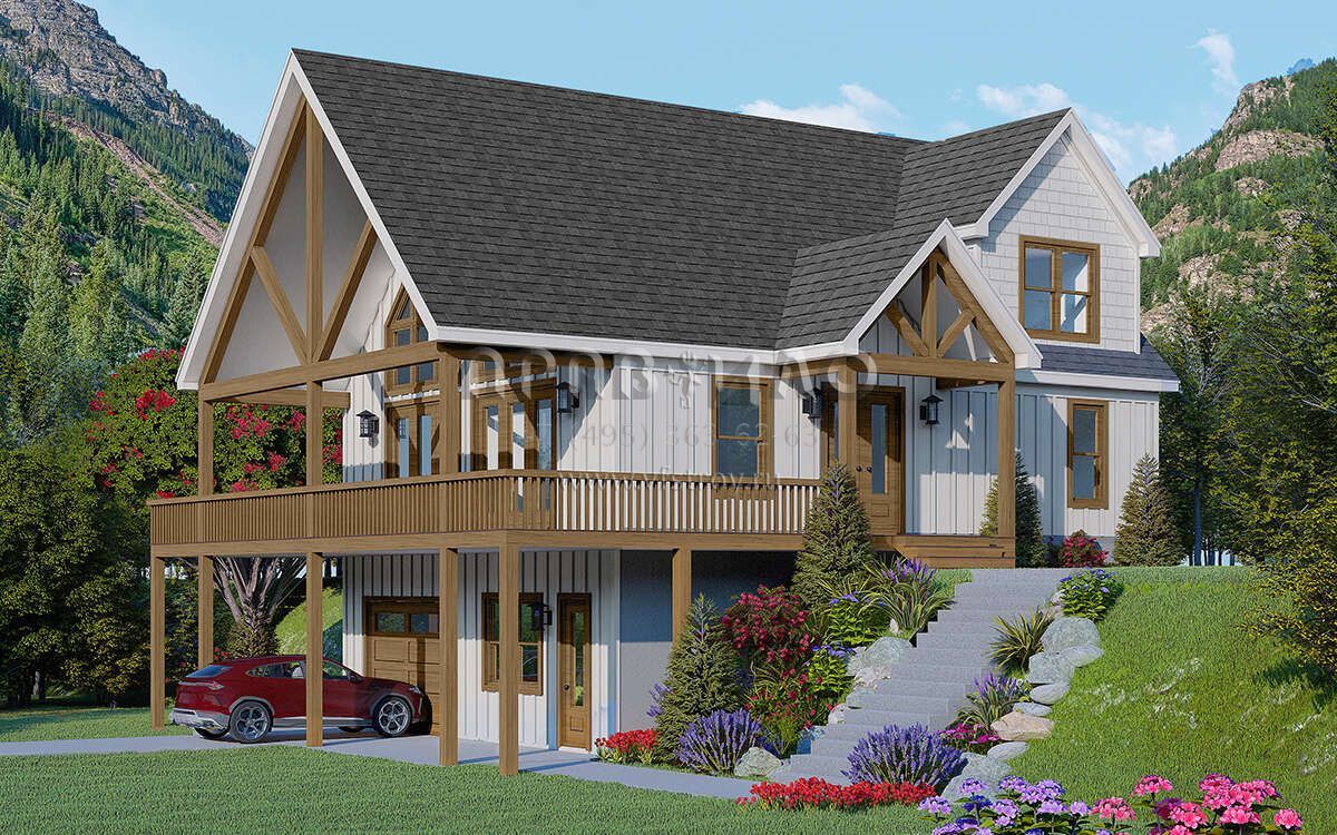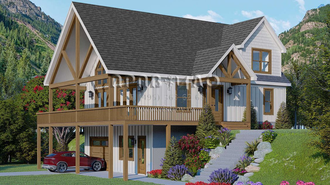 Проект двухэтажного дома с гаражом на одну машину в стиле Шале S5-178 (940-00836)