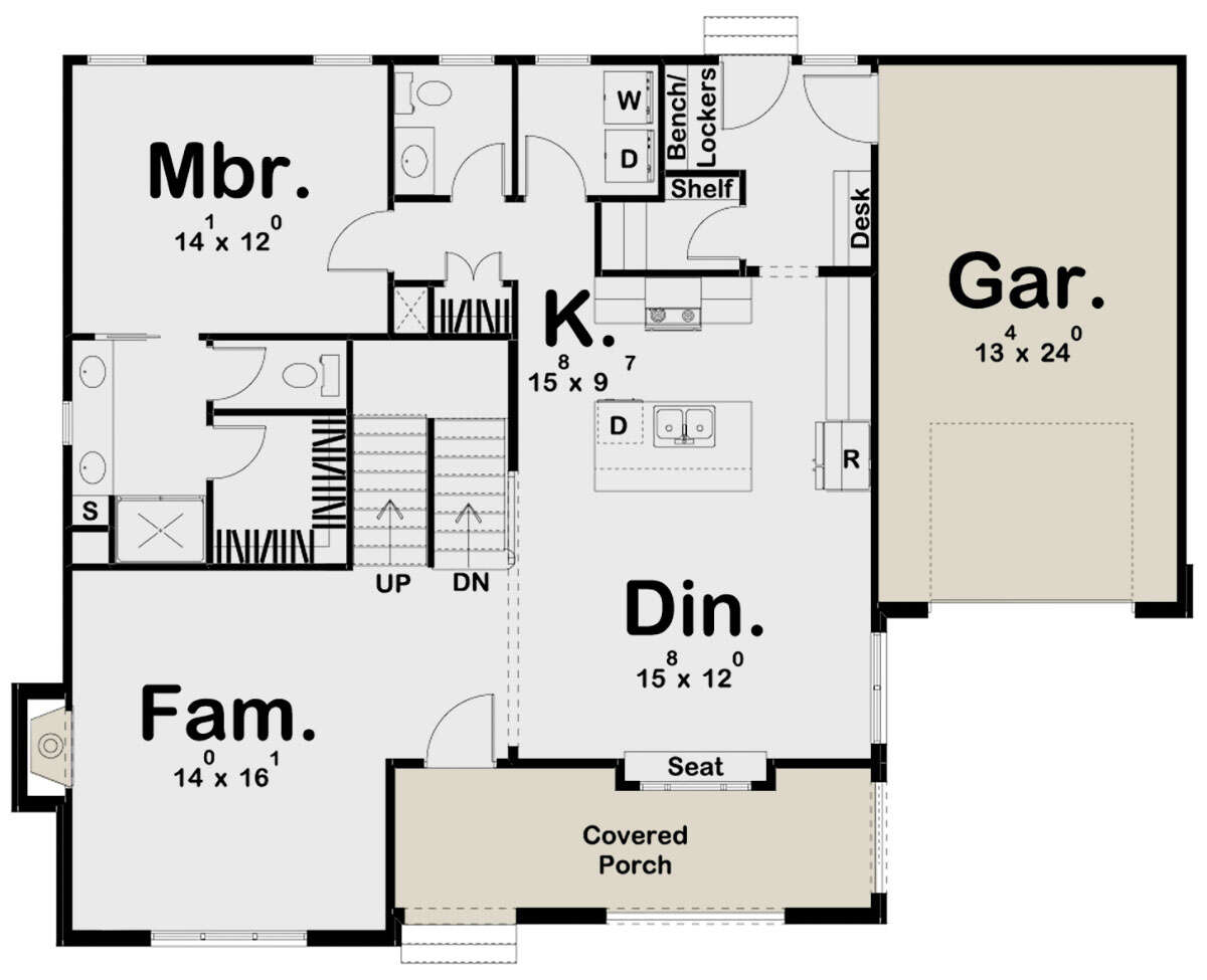 Проект двухэтажного дома с гаражом на одну машину в стиле Ранчо S5-178 (963-00403)