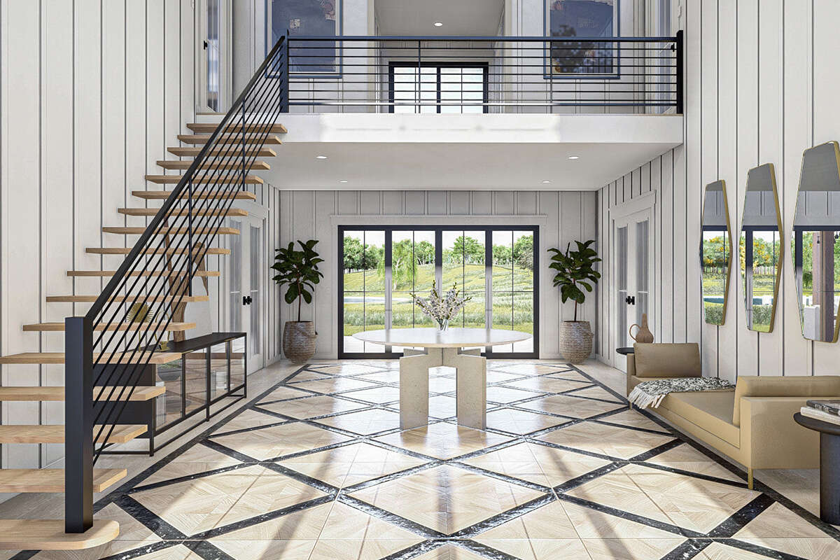 S5-178 (963-00723) Это иностранный проект, для которого требуется адаптация под нормы, действующие в Российской Федерации. Вы видите проект дома в современном стиле. В этом доме сочетаются черты сельской постройки и аскетичность лофта. Внутри жильцы смогут проводить время с максимальным комфортом. Обратим внимание, что сейчас на планировках все размеры представлены в футах. Для перевода в метры вам необходимо значение в футах умножить на 0,3048.