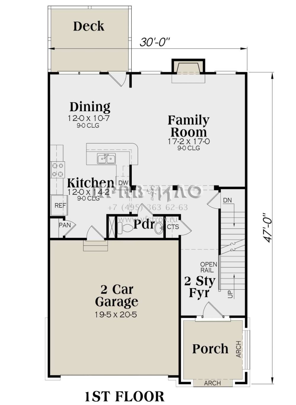 Проект двухэтажного дома с гаражом на две машины в стиле Готика S5-179 (009-00096)